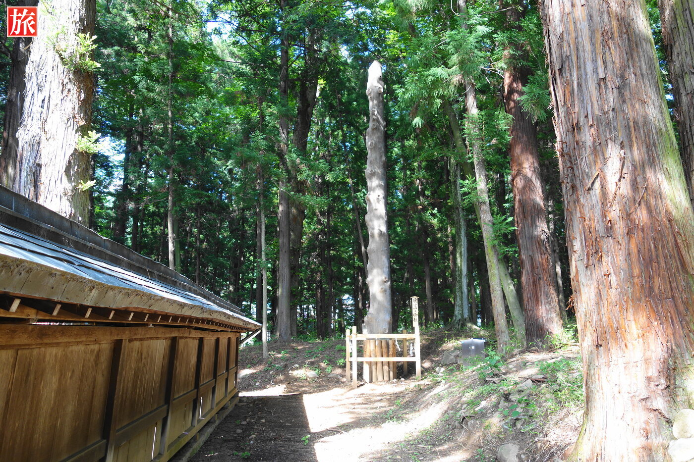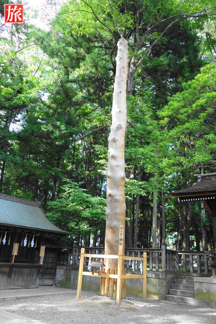 樹齢200年程の樅の巨木・御柱は七年目毎(六年に一度)、寅と申の年に立て替えられる(御柱祭)。