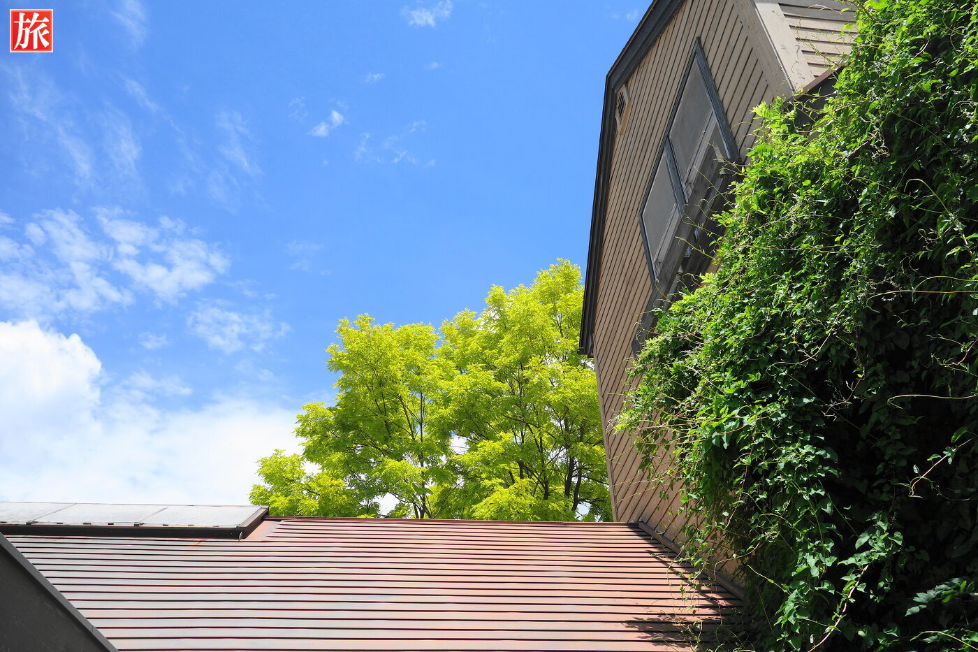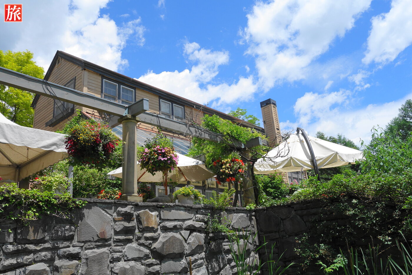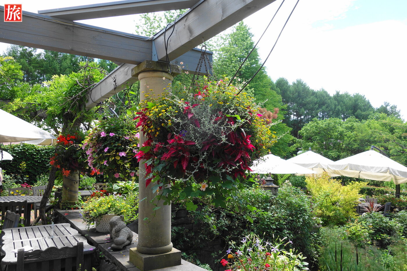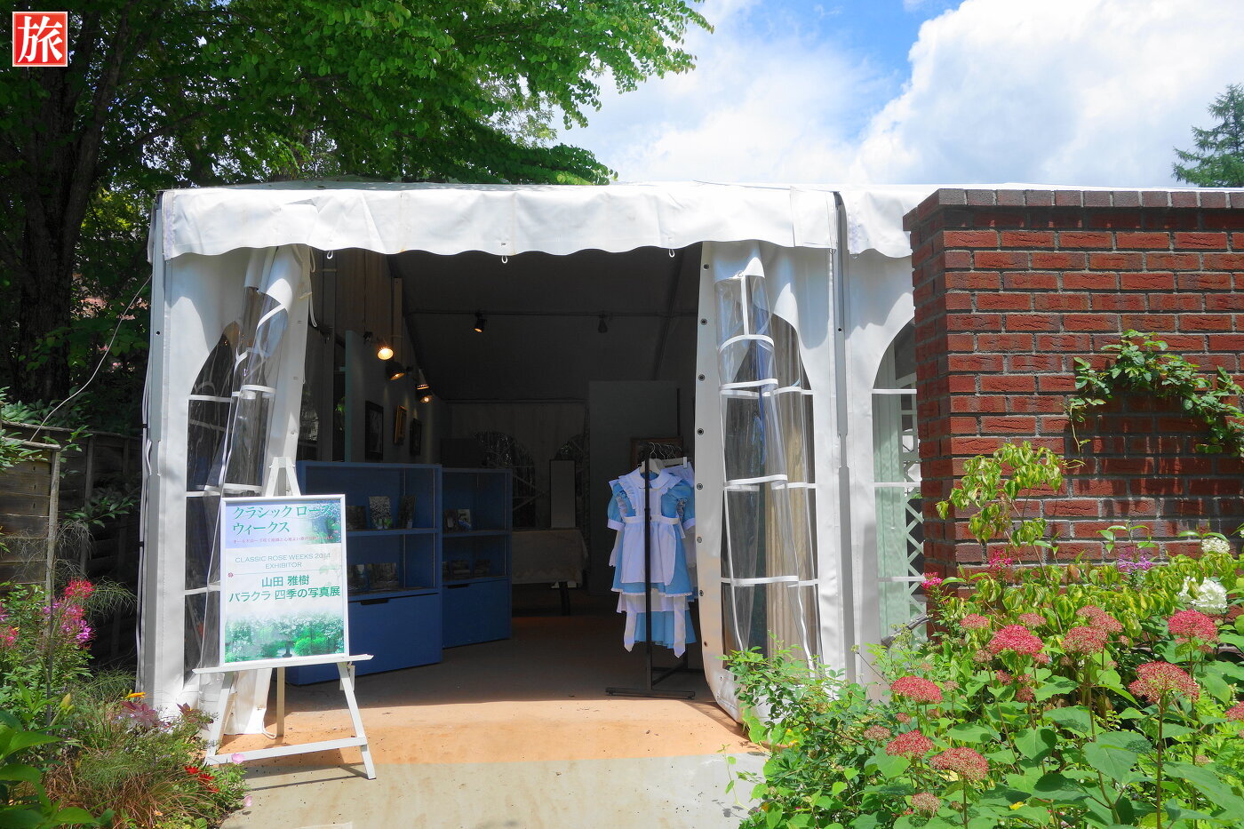 青空が気持ちいい!庭園入り口付近の風景。テラス席付近の風景。