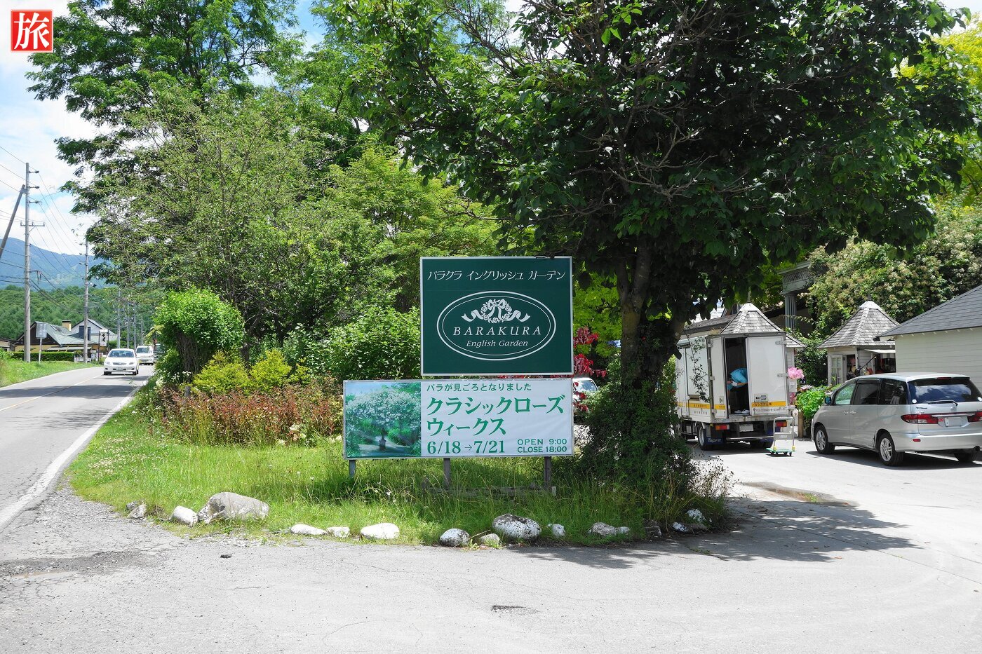 ビーナスラインから見える入り口看板。無料駐車場。ガーデン入場口です。