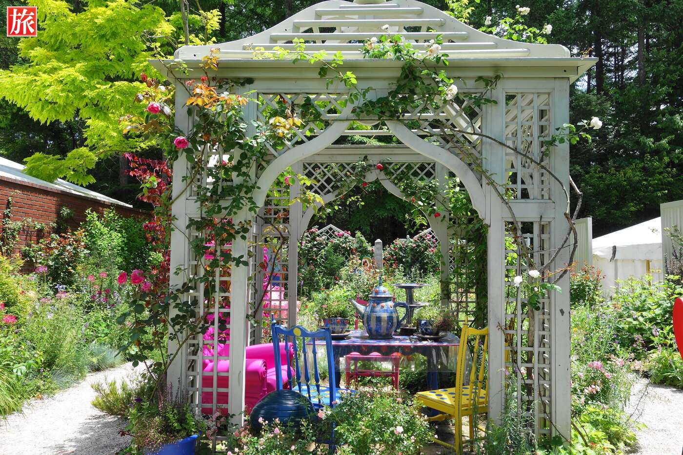 オーナーであるケイ山田の統一デザインのもと、設計から石工、ガーデナーまで庭園のすべて、英国人専門家による日本初の本格的英国式庭園。バラクラの象徴であるオールドローズは、トンネルやパーゴラに絡み、美しい景観に添え、野バラの魅力を今に伝えています。