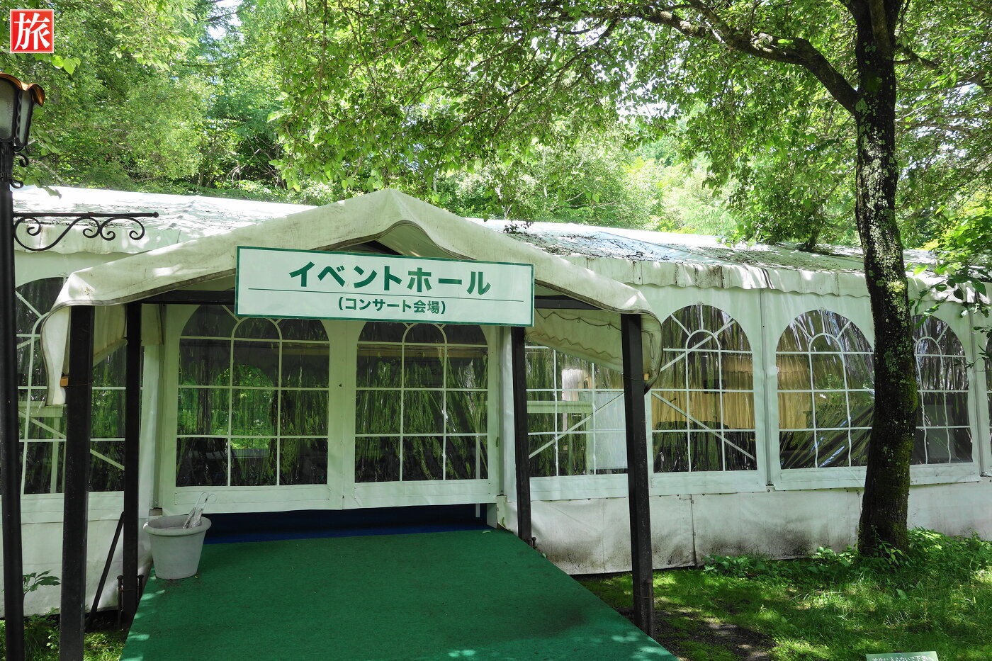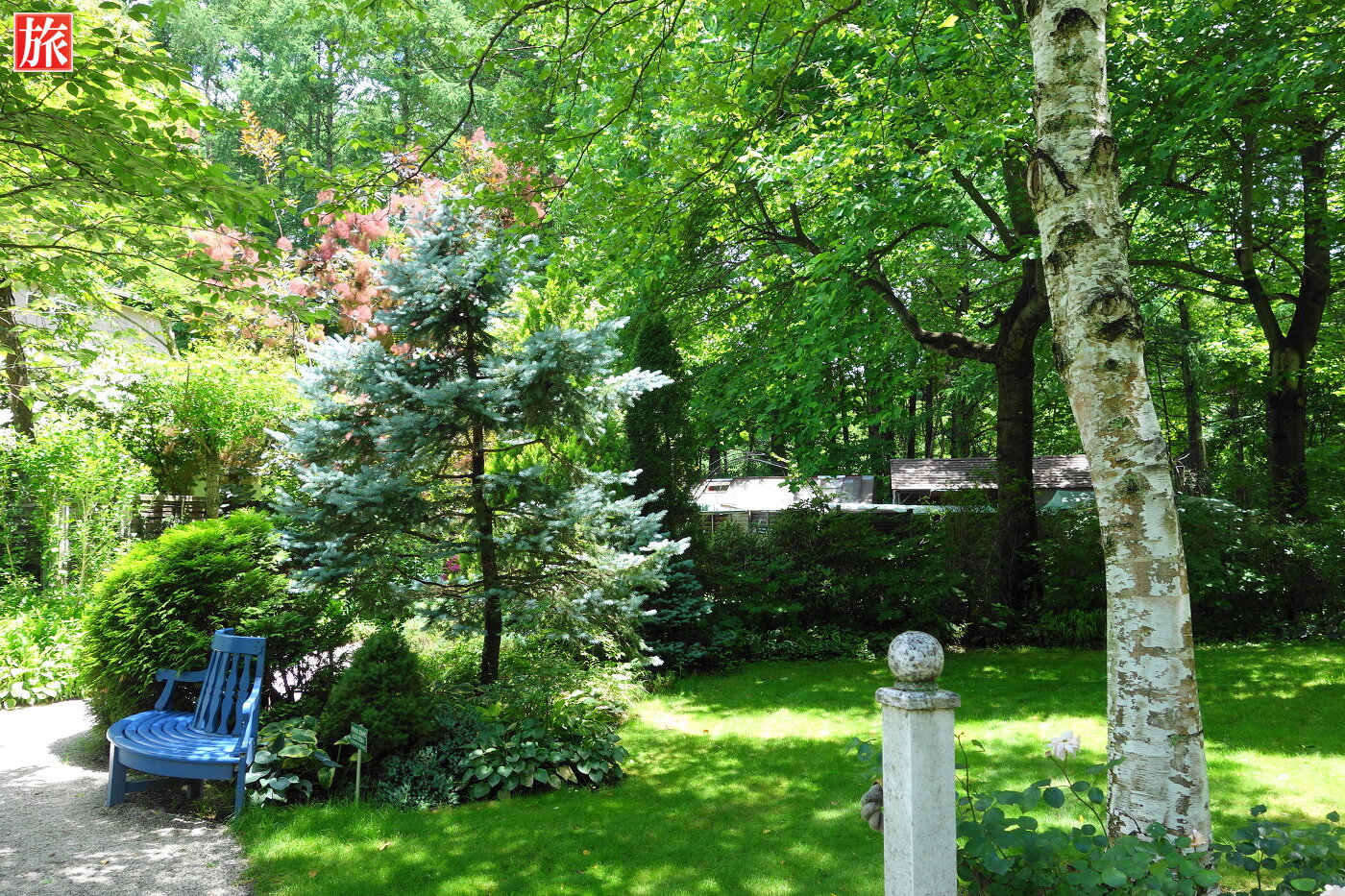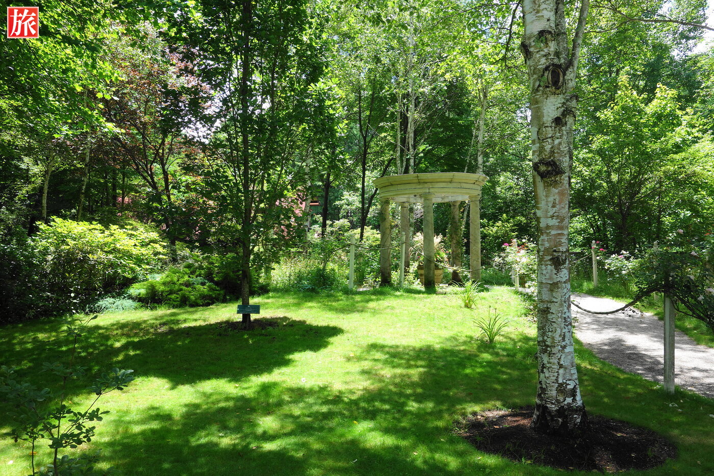 白樺とパビリオン。パビリオン付近の風景。