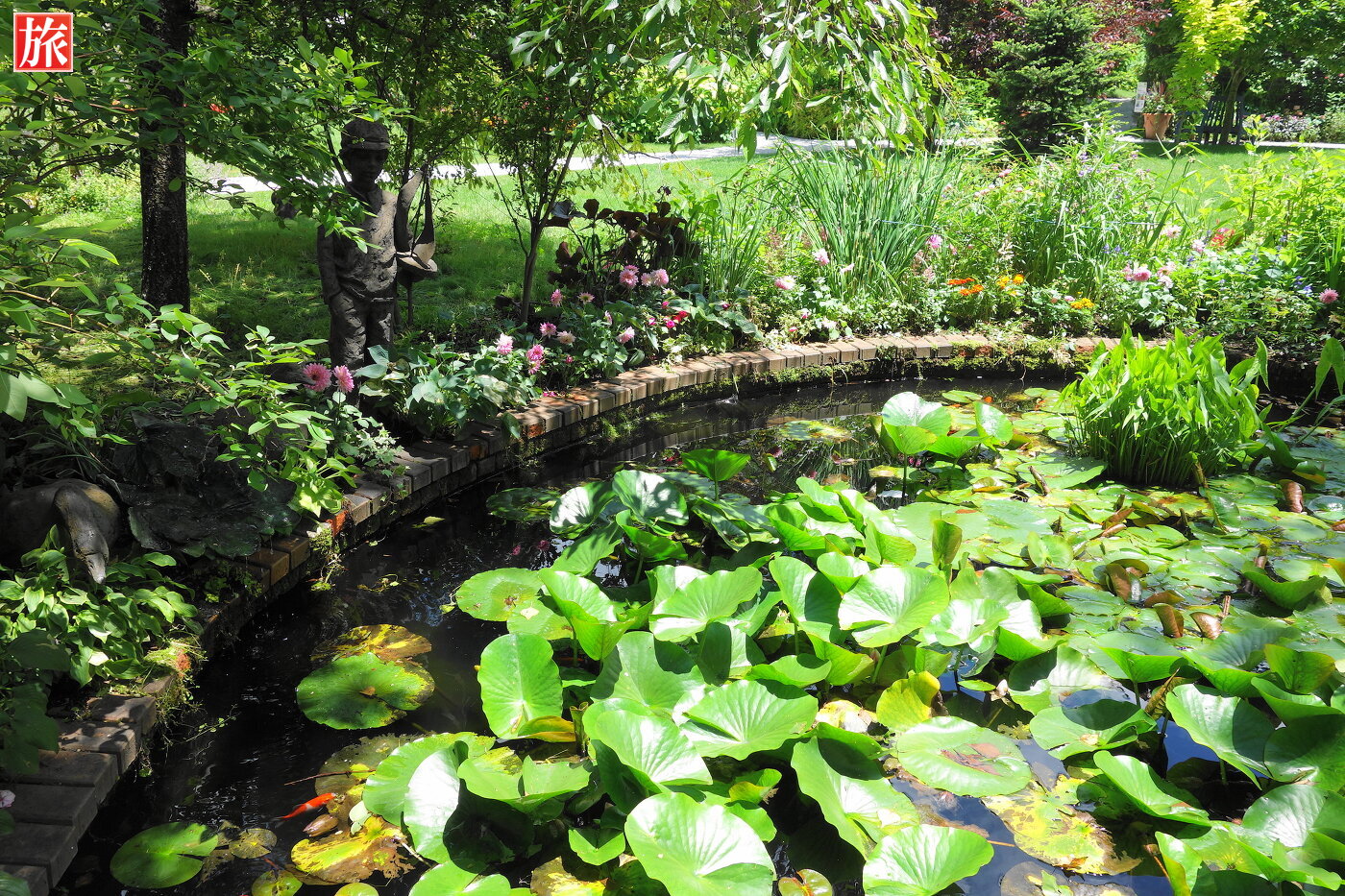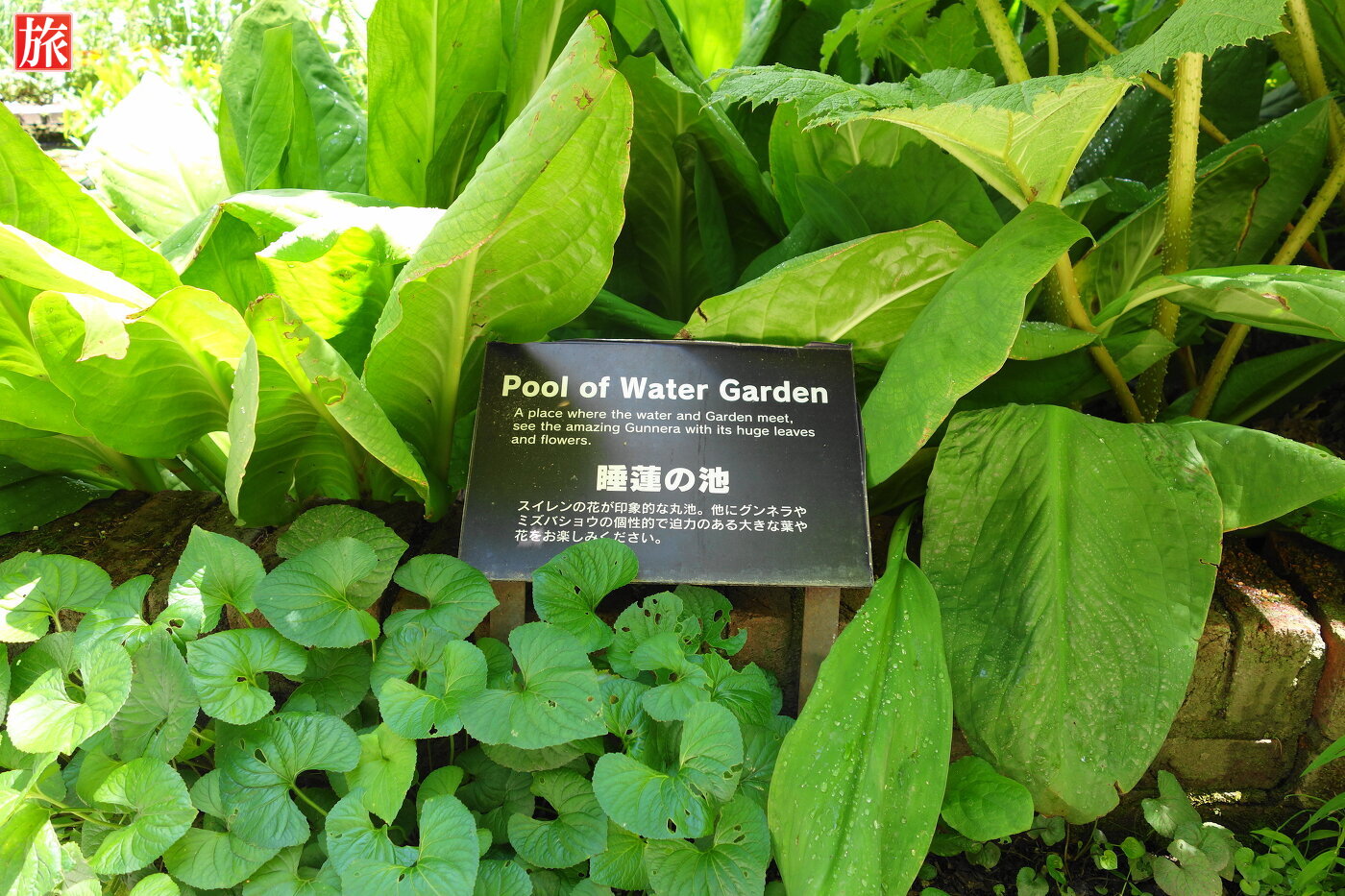 睡蓮の池。睡蓮の池の案内板。側にはイベントホールがありました。