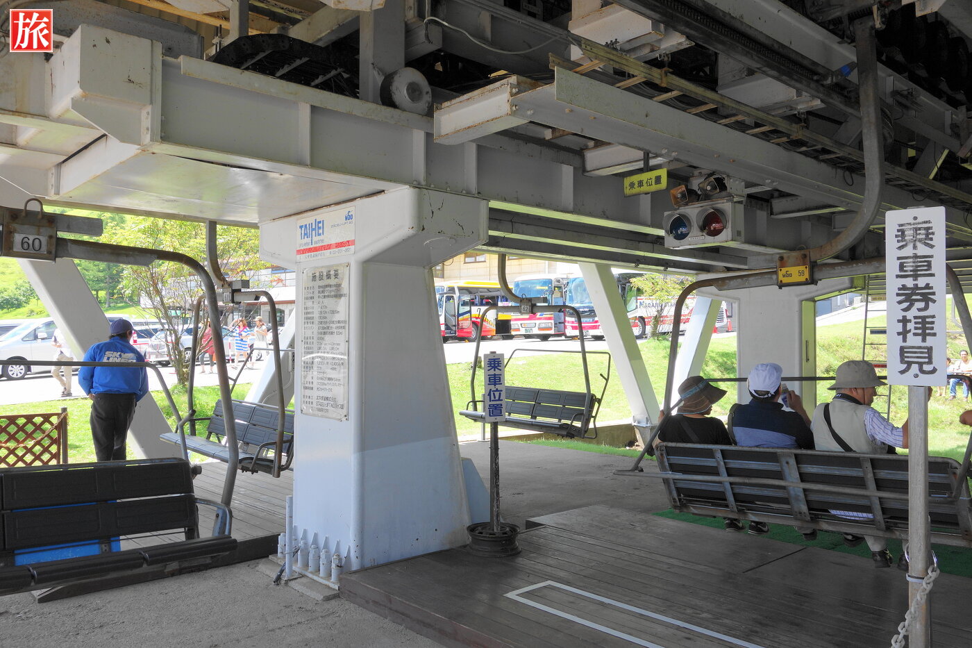 スカイパノラマで山頂行きリフトに乗ります。中腹−車山山頂までは869mの空中散歩です。