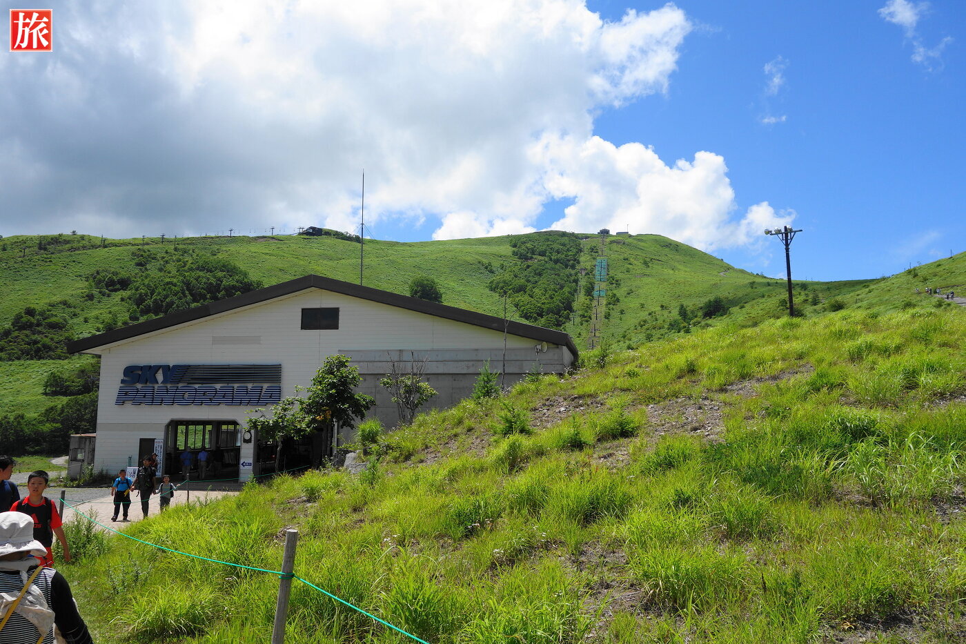 駐車場は満車状態。4人乗りスカイライナーに乗り中腹までいきます。左手に見えるのが車山山頂です。
