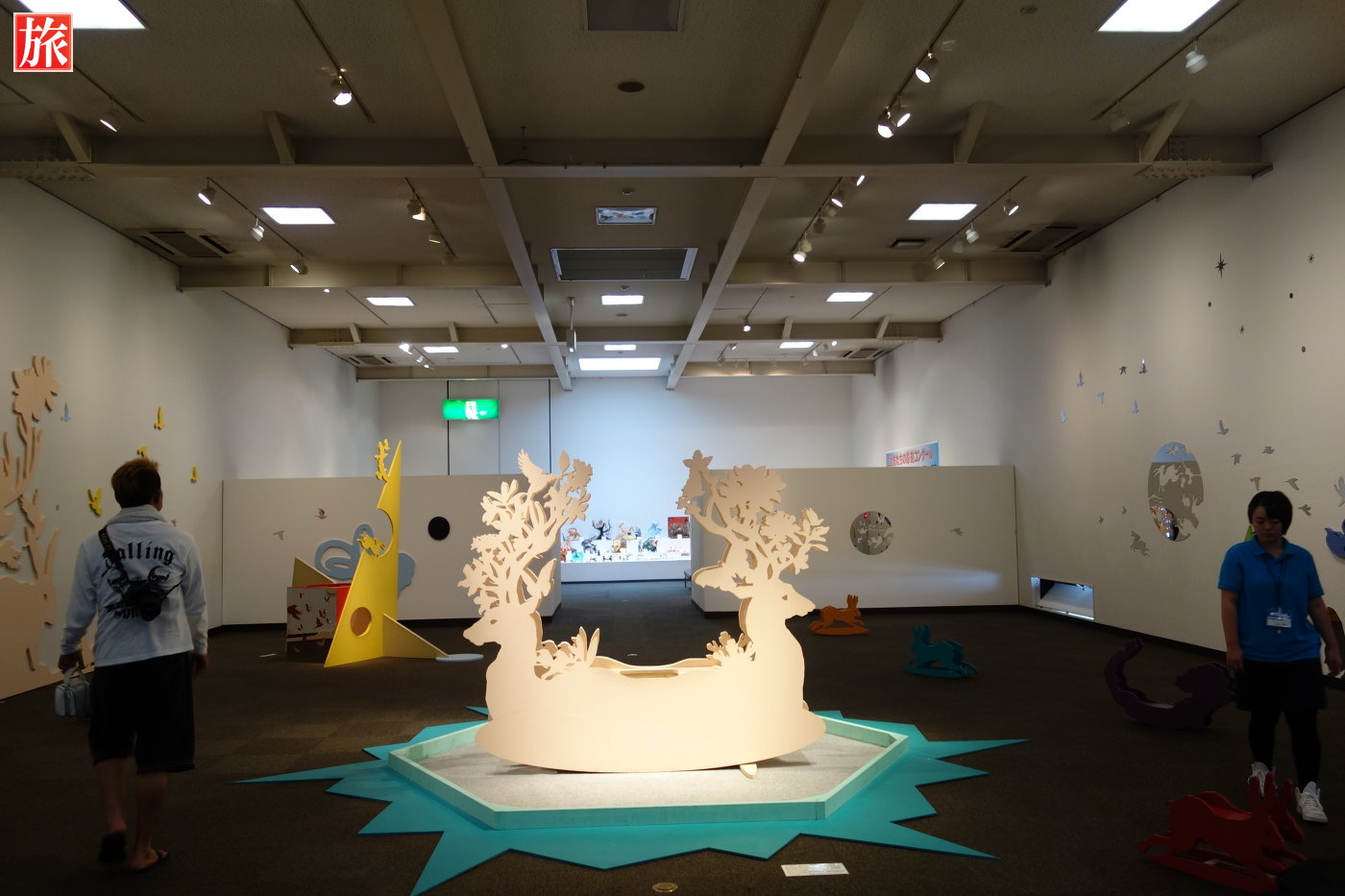 再入場は可能である。中画像はギャラリー1と呼ばれるエリア。「こどもと旅する美術館」 と題して展覧会を開催中。