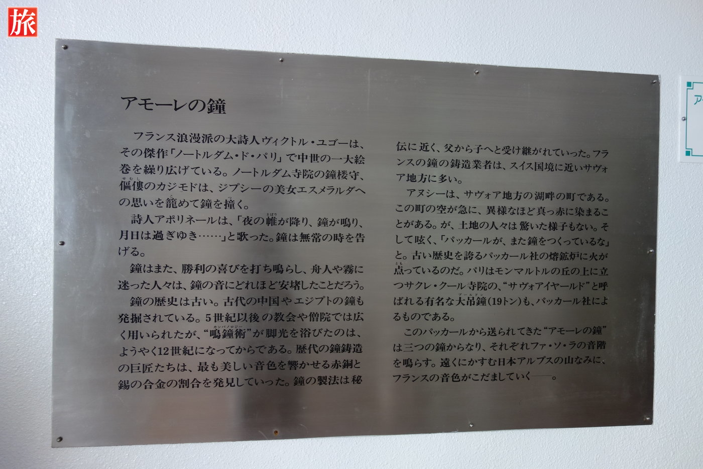 ファ、ソ、ラの音を持つ大中小の3つの鐘で構成されている。深みのある音色が美ヶ原高原一帯に響き渡る。