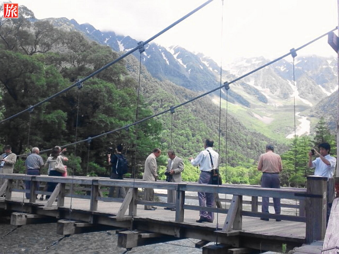 美しい穂高連峰。カッパのグッズが沢山!河童橋上の様子です。