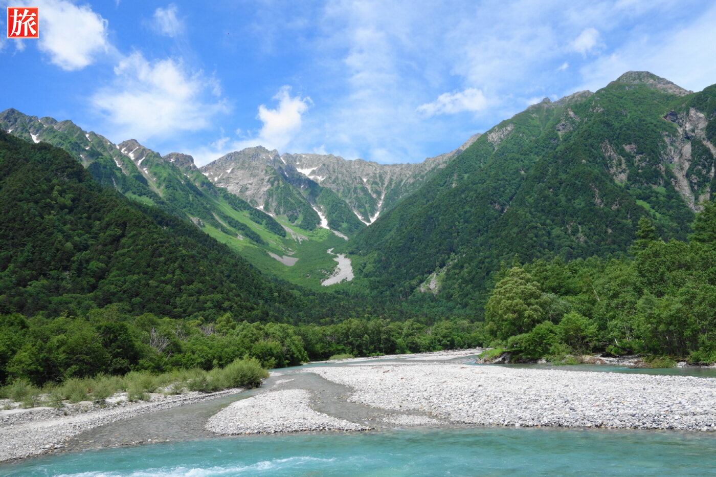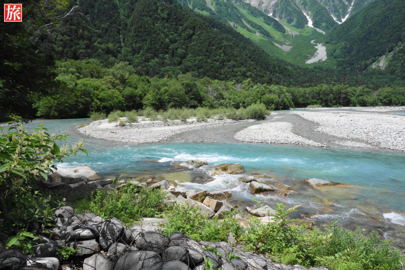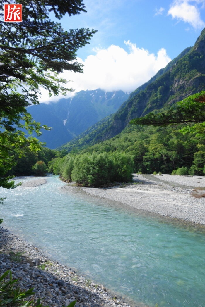 ジャンダルム・奥穂高岳。蒼く清冽な梓川。穂高岳全景。