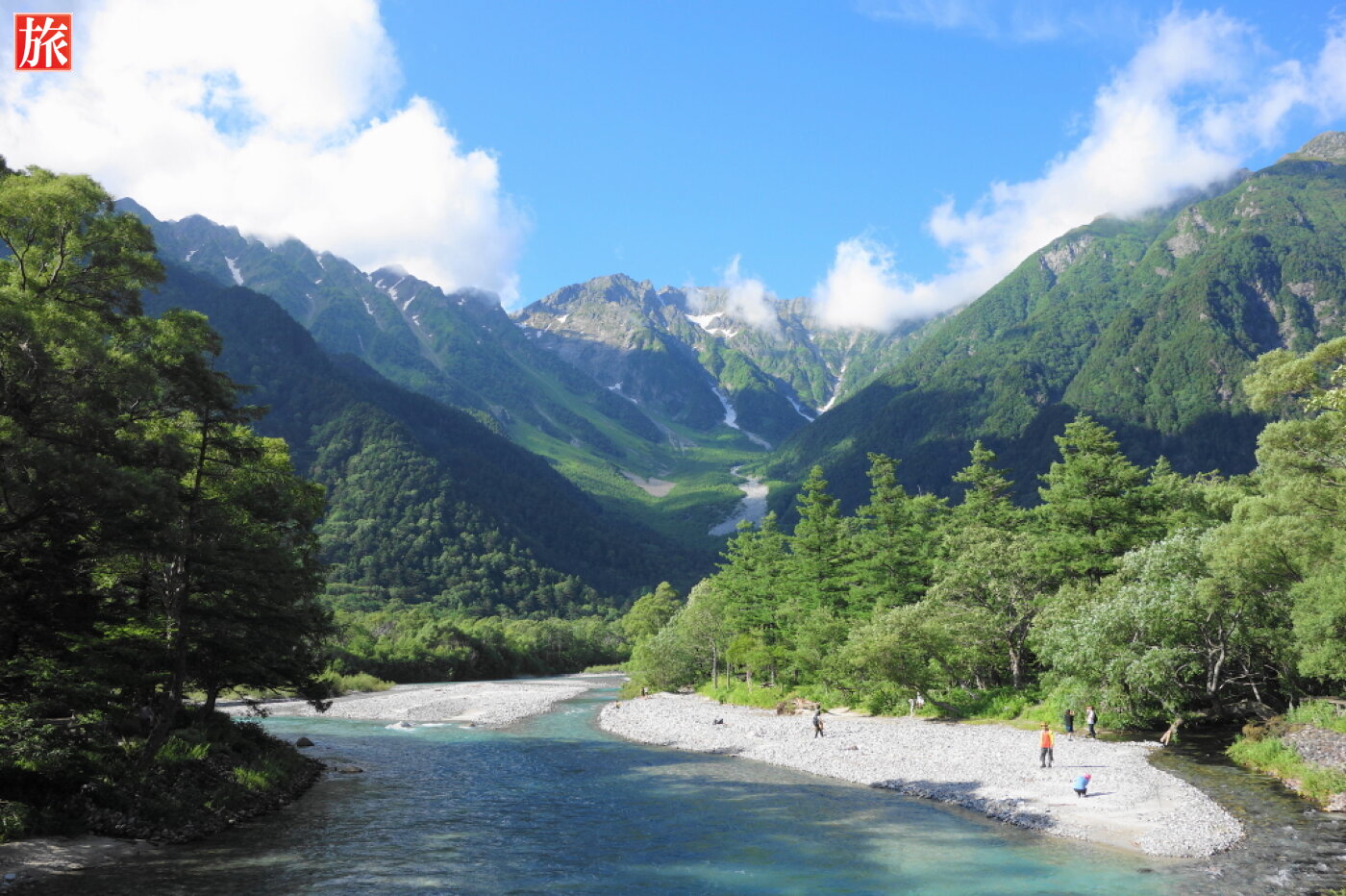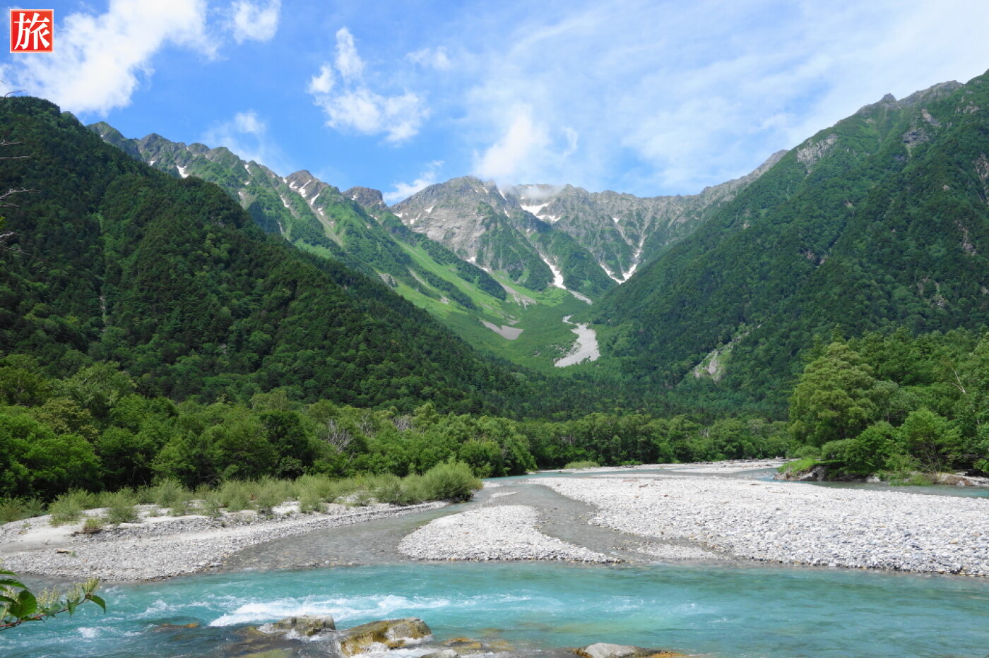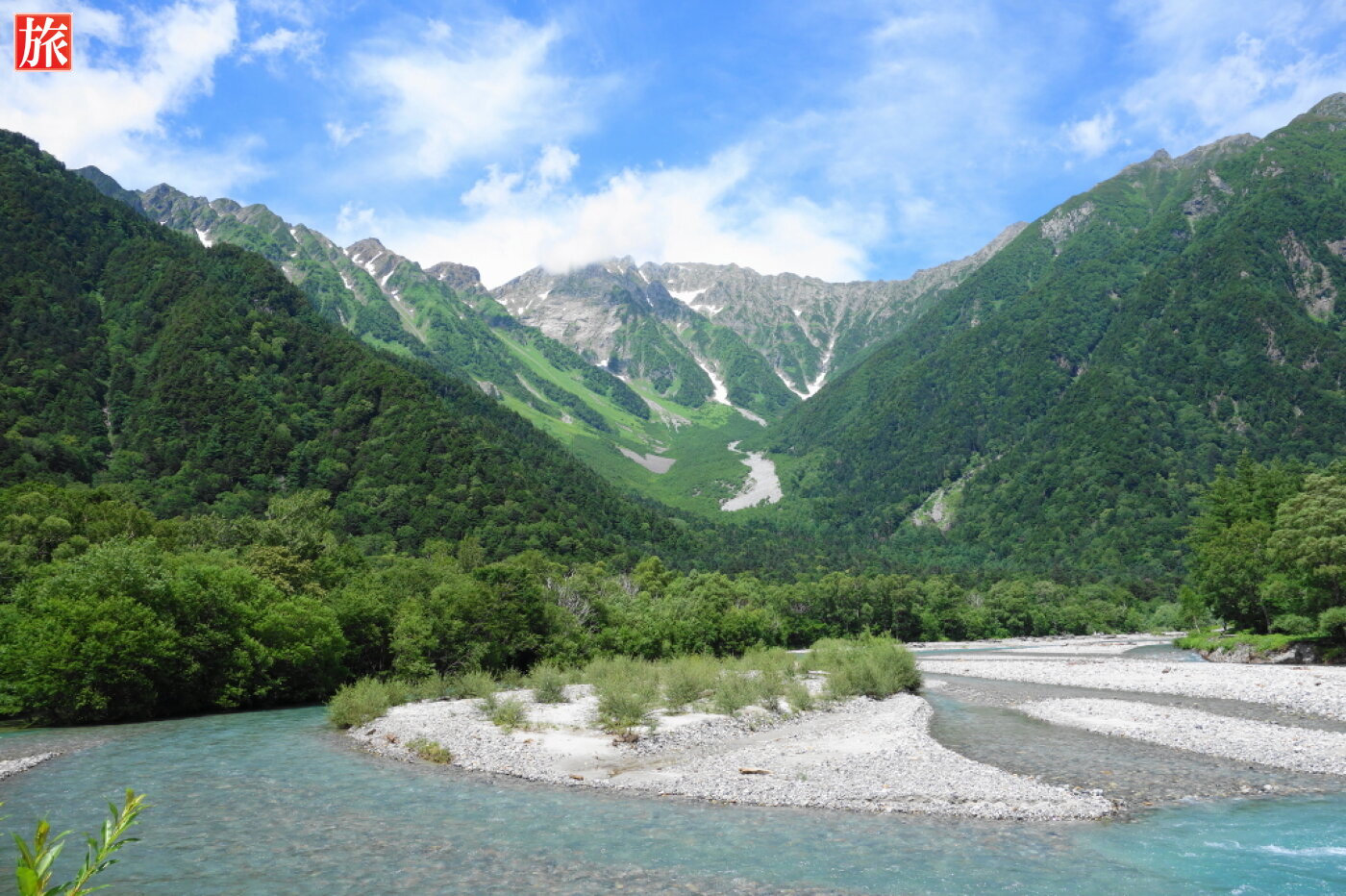 ジャンダルム・奥穂高岳。蒼く清冽な梓川。穂高岳全景。