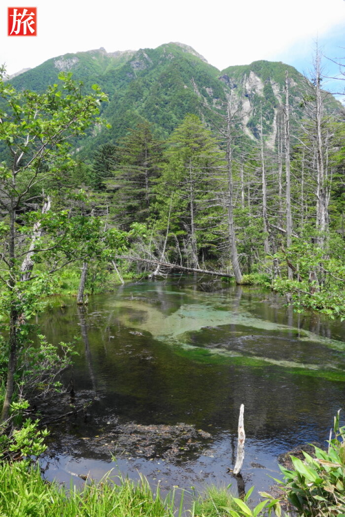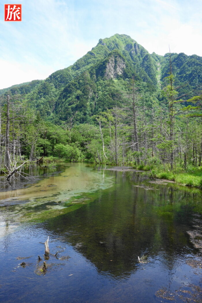 湿地が池となっています。明神岳(標高2931m)です。梓川に出ました。