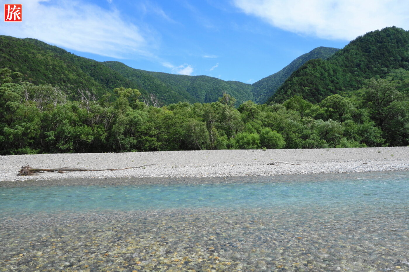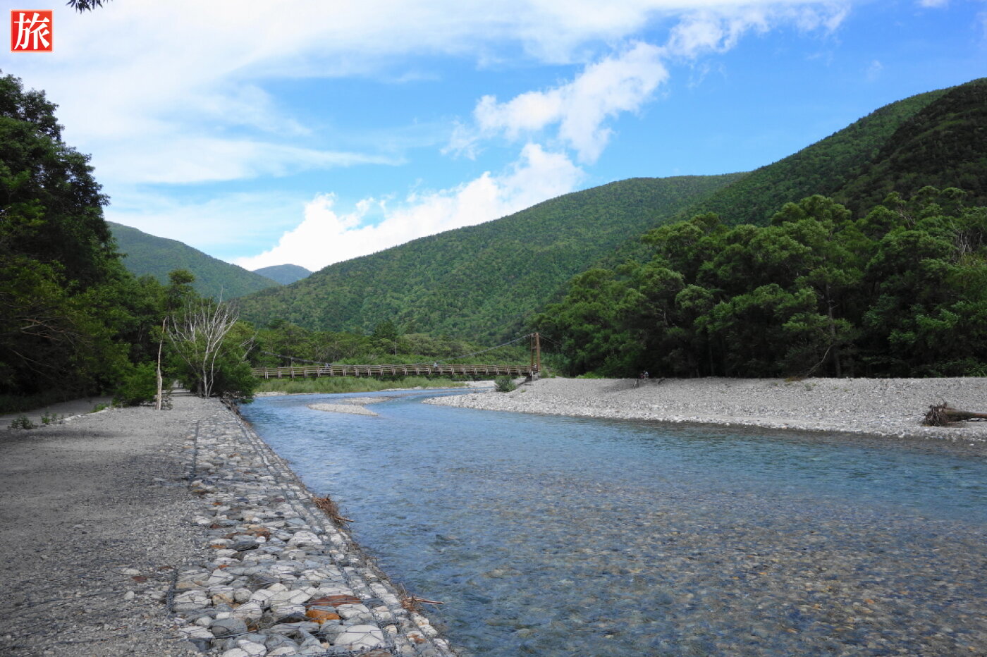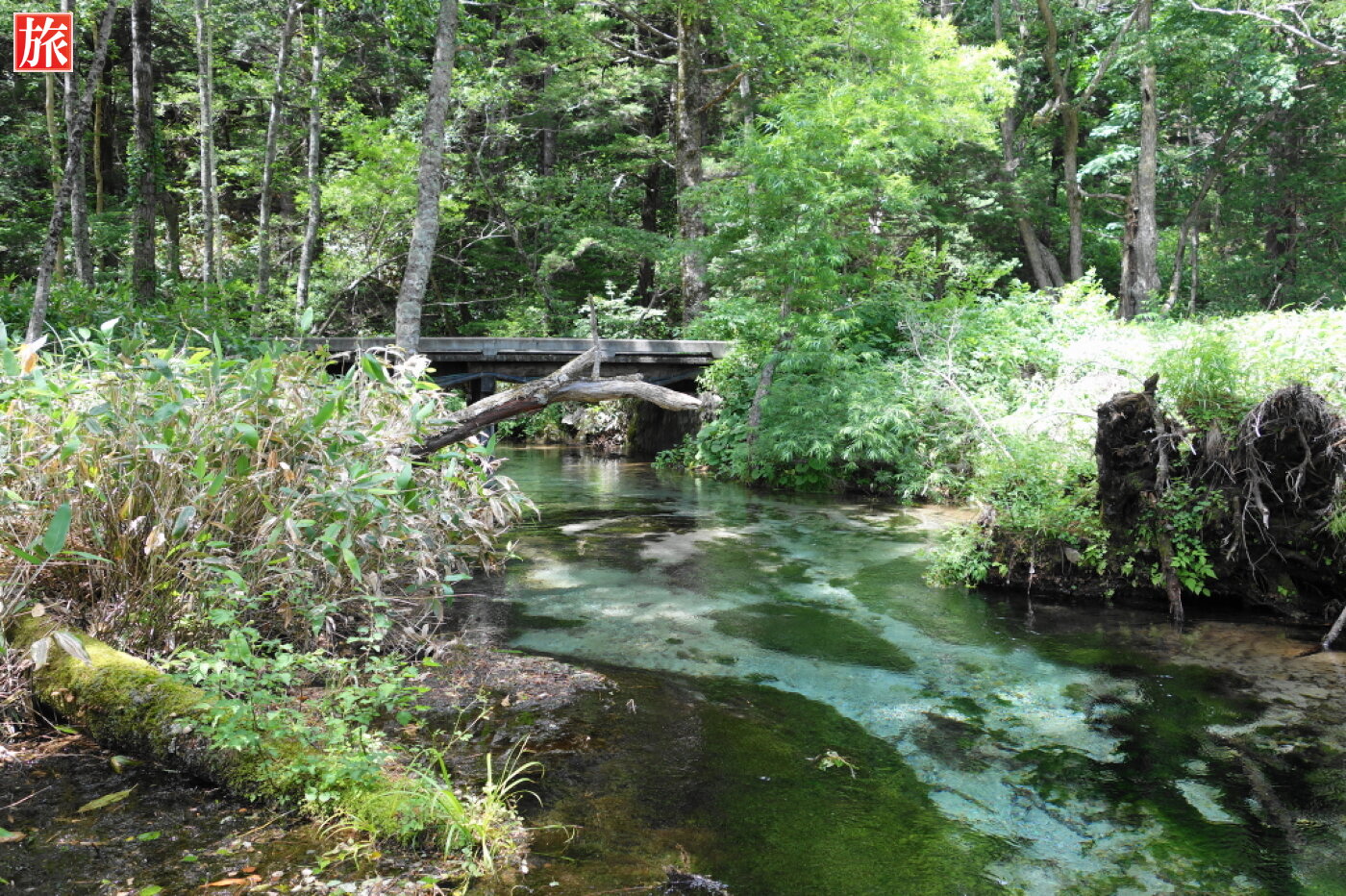 情報基地の上高地ビジターセンターです。河童橋の上流に位置する「しみずばし」。六百山の麓から湧き出た豊富な水が、梓川に流れ込む 透明度抜群の清流、清水川。上高地の飲用水源として利用されています。