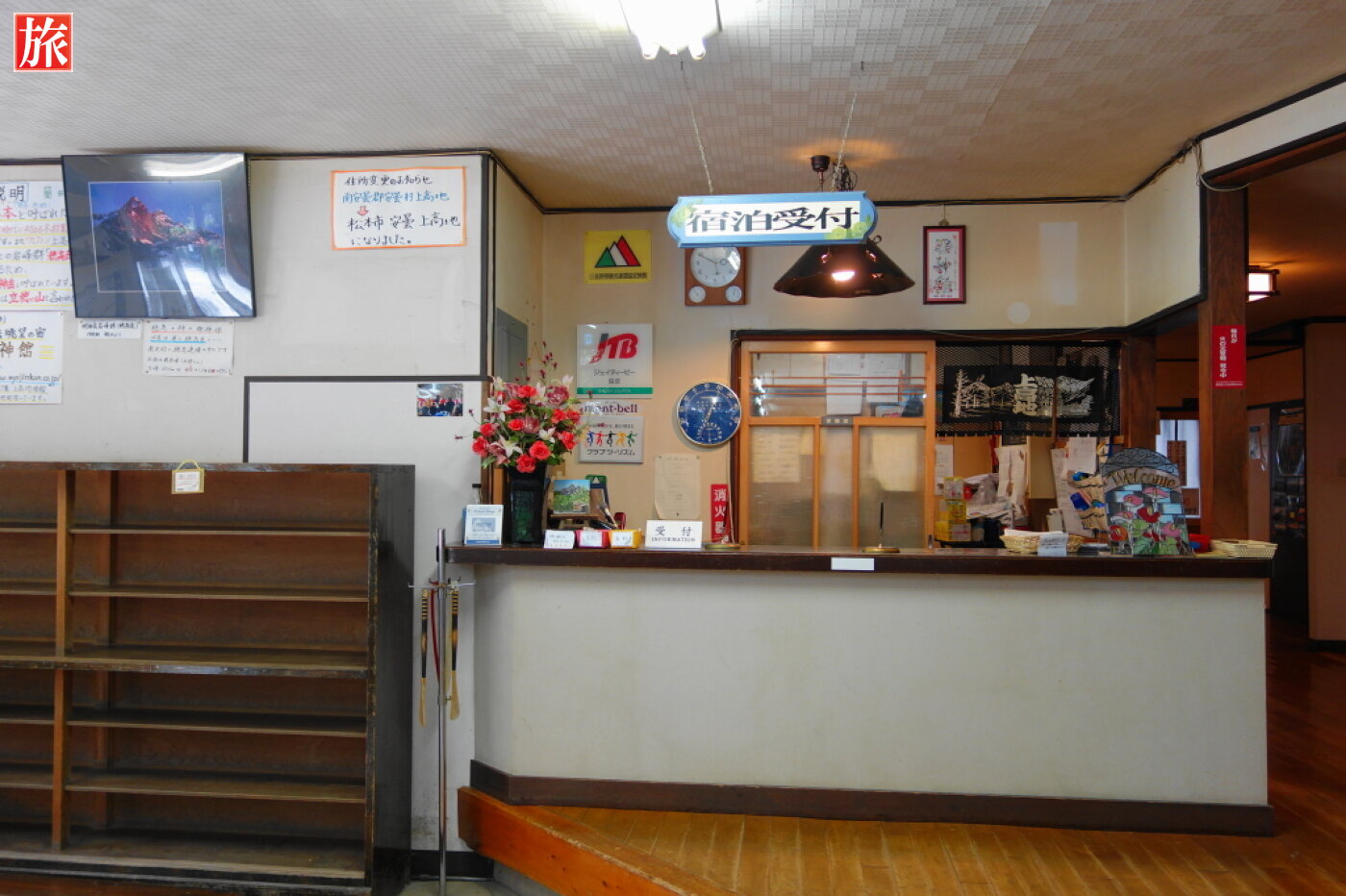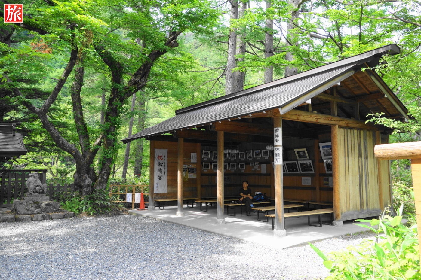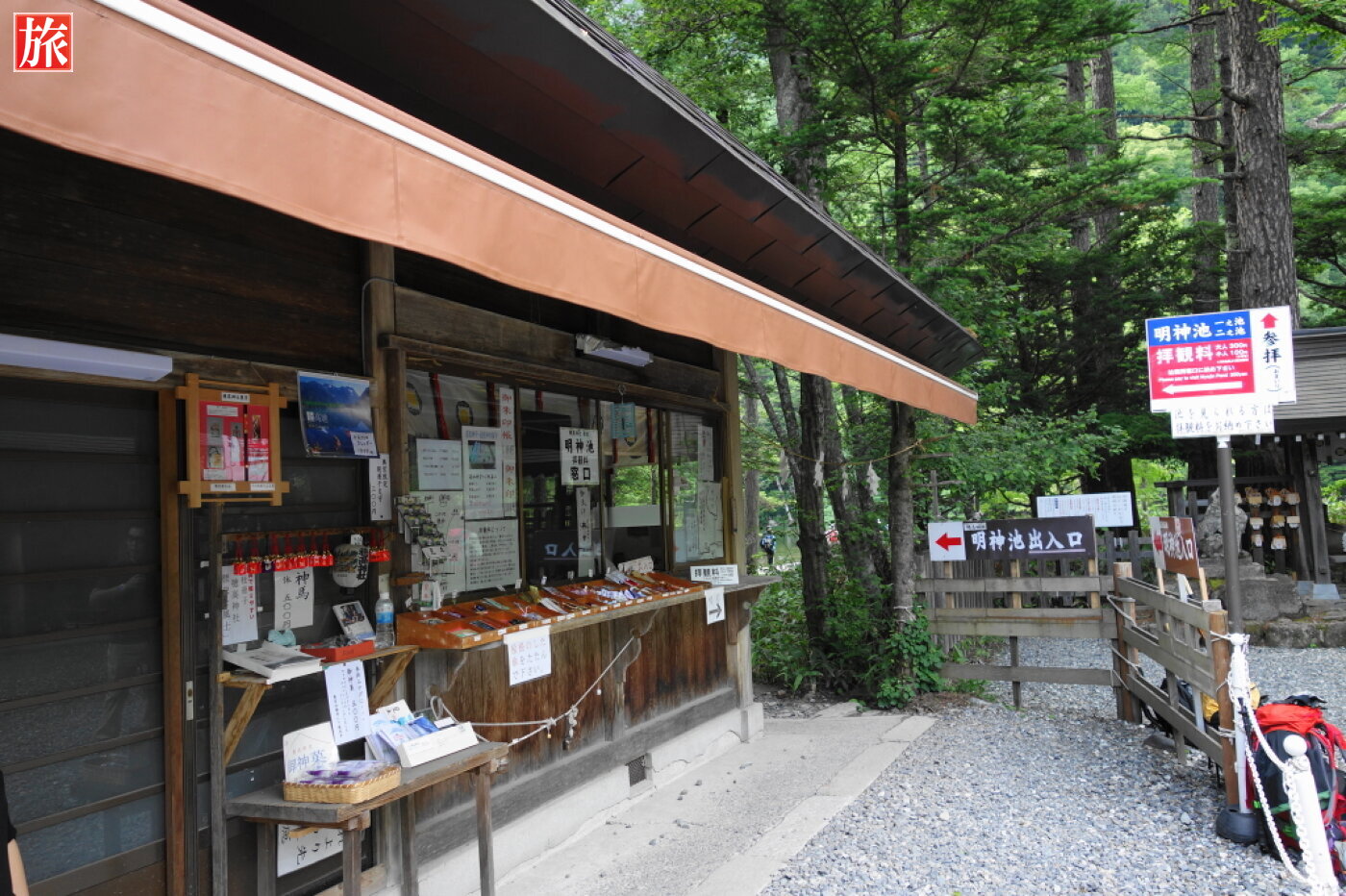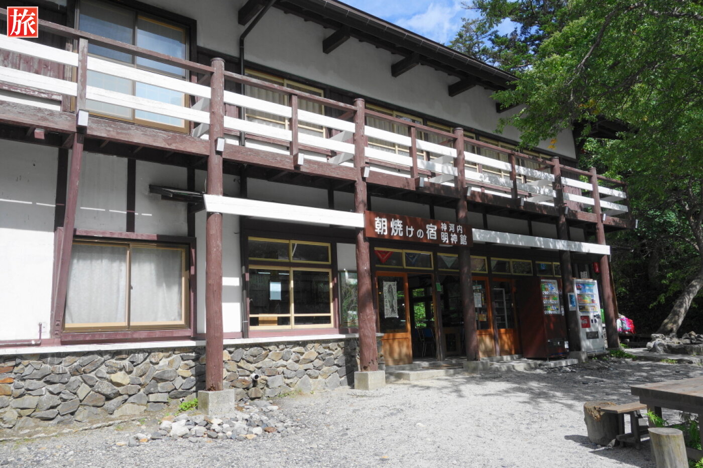 明神に到着しました。上高地明神地区はパワースポットとして知られています。朝焼けの宿「明神館」(明神地区の一軒宿)です。明神館内部の様子です。