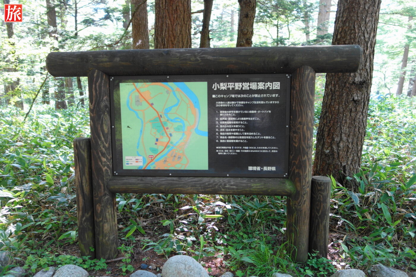 小梨平野営場案内図。小梨平にある「森のリゾート小梨」のキャンプ場です。