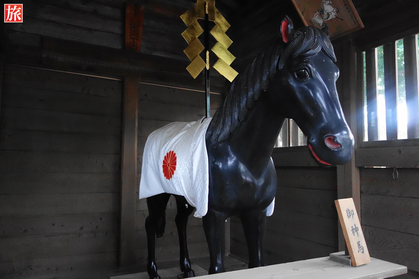 矢田部盛治(やたべもりはる)の銅像。神馬舎。毎朝、神を乗せて箱根山に上ったという御神馬。神馬舎の説明板。
