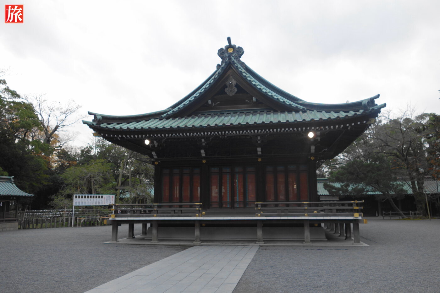参道を振り返って見た様子。神門。拝殿。