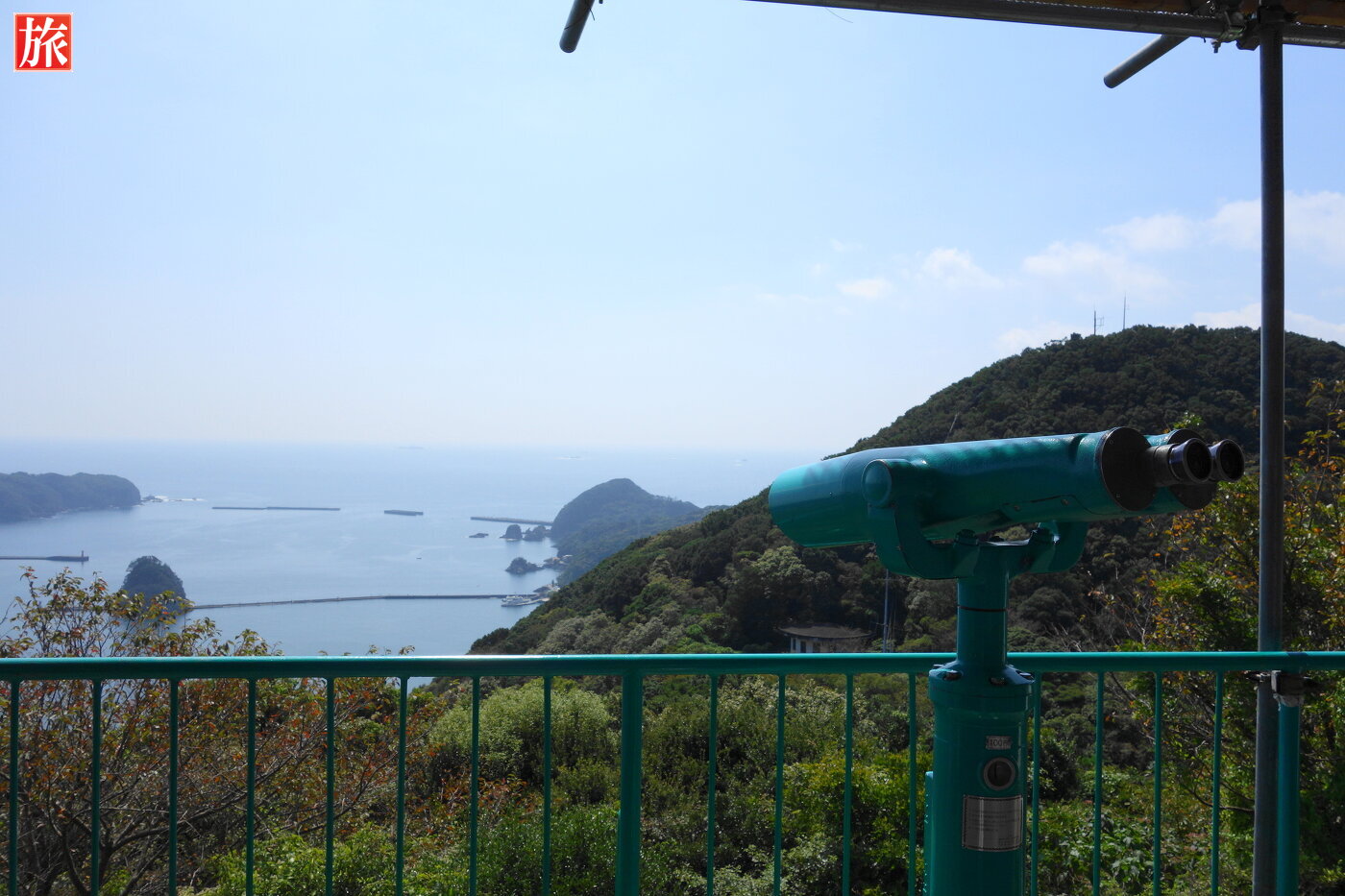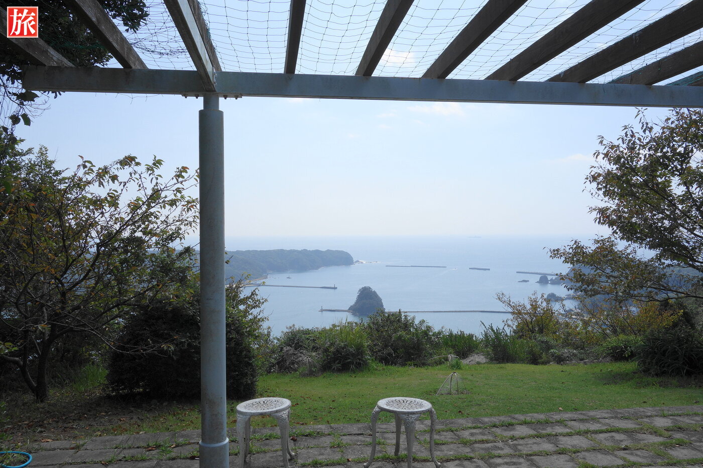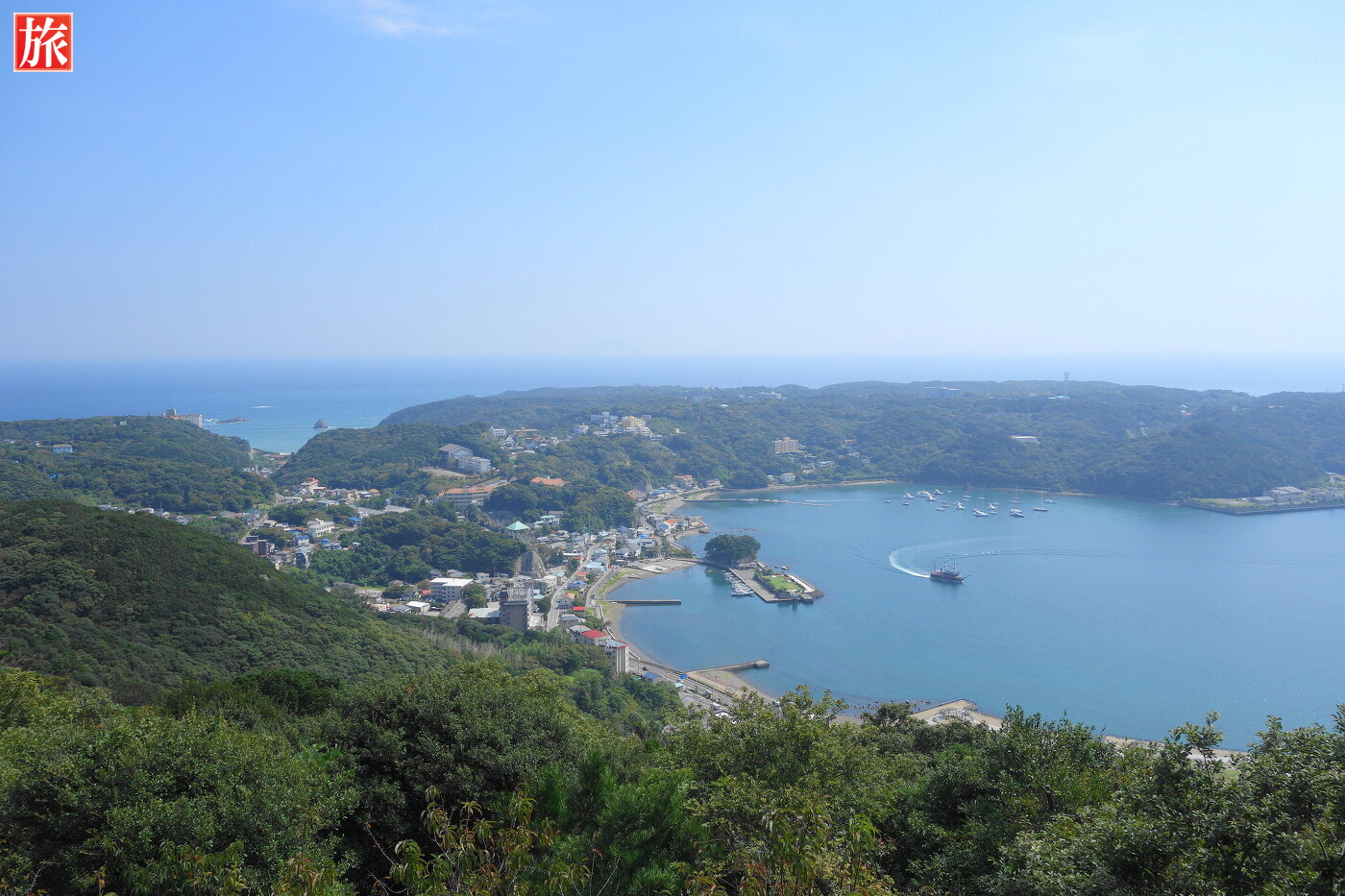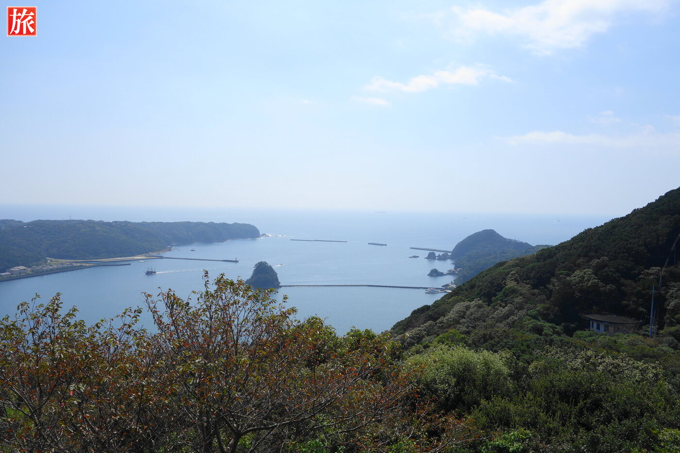 寝姿展望台。寝姿展望台から眺めた爪木崎、下田港の風景。