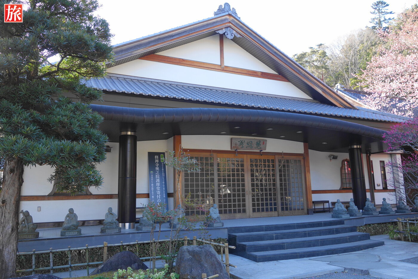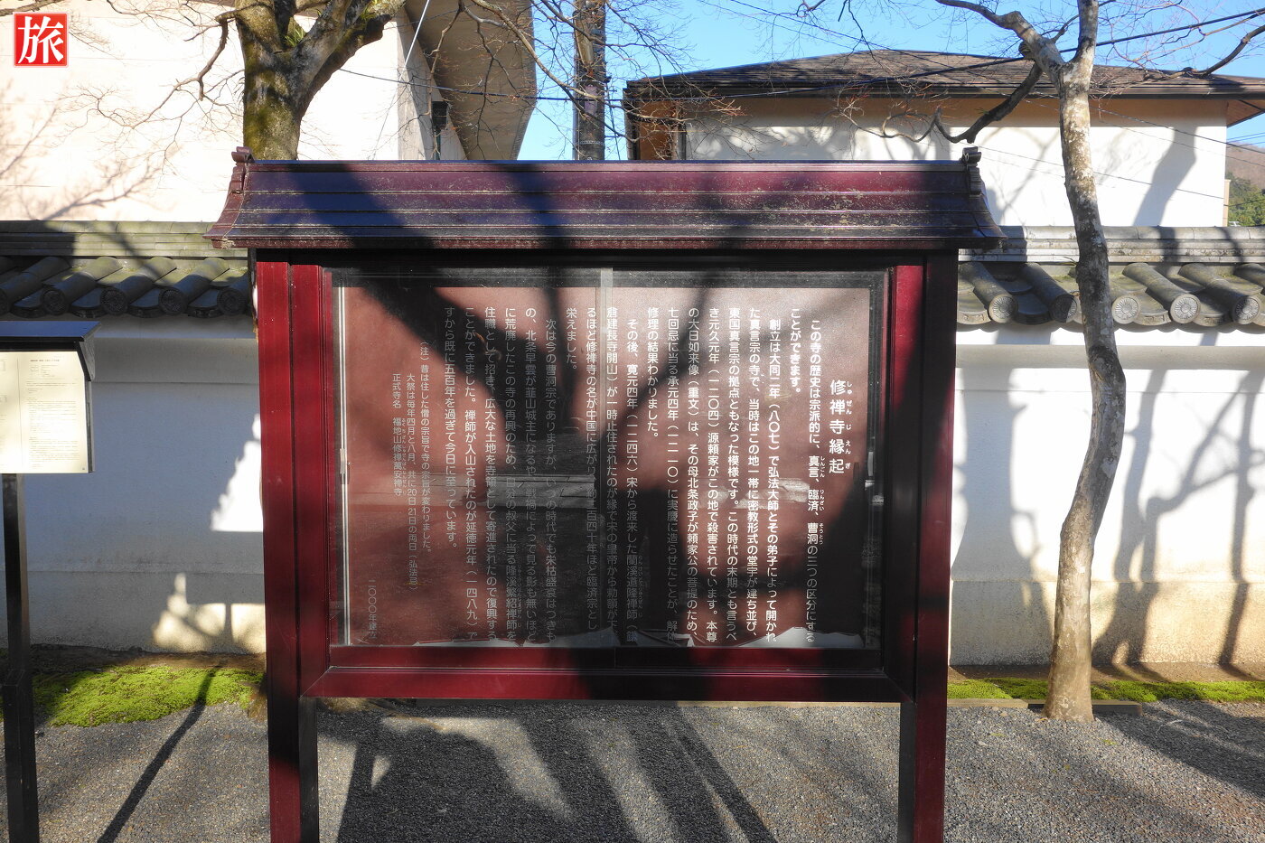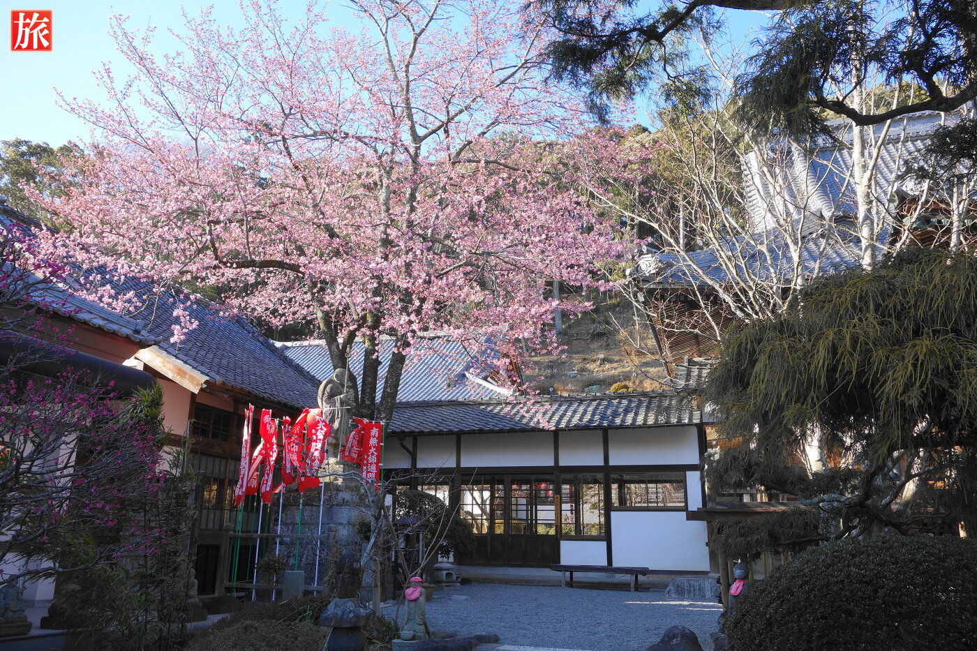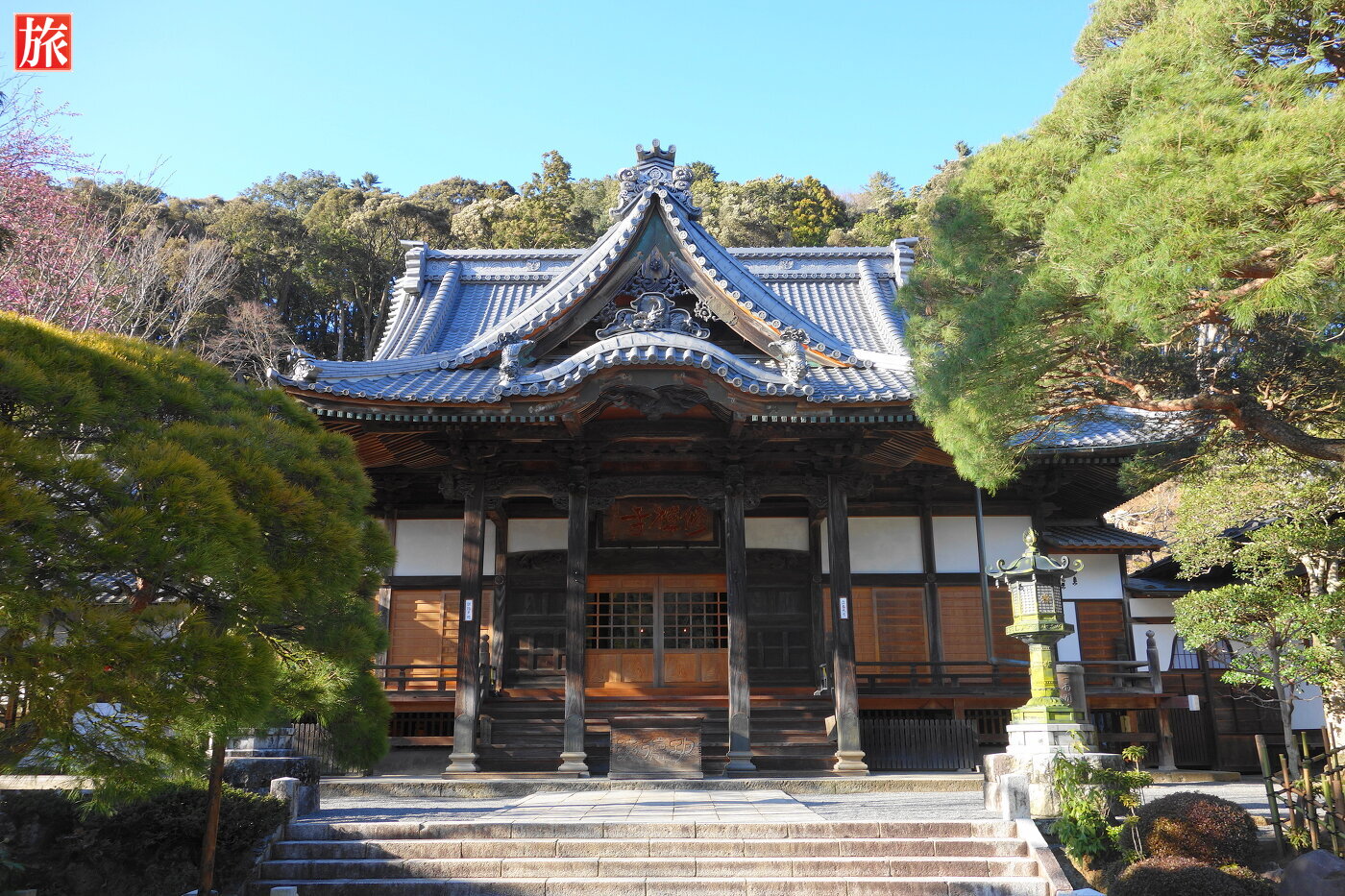 鎌倉時代には北条氏、源氏の興亡を見守った伊豆を代表する名刹で、伊豆八十八ヶ所霊場巡りの結願の札所。境内の隣接している宝物殿には、非業の死を遂げた若き将軍源頼家の悲劇を描いた「修善寺物語」で、有名な古面もあります。源氏滅亡の場として歴史にその名を残しています。