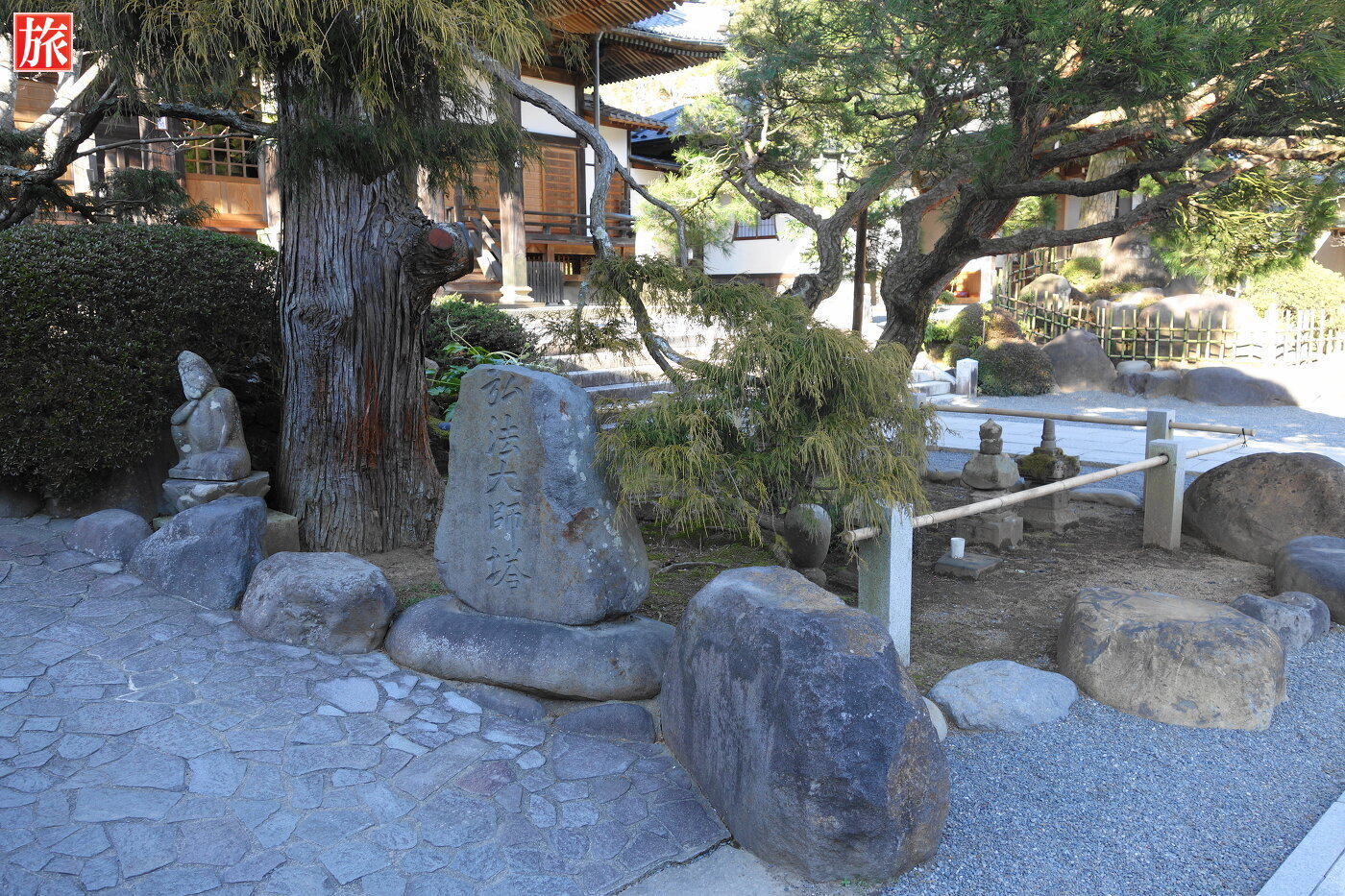 弘法大師塔。檀信徒会館。大晦日には一般の人に開放され、除夜の鐘をつくことができる鐘楼堂。