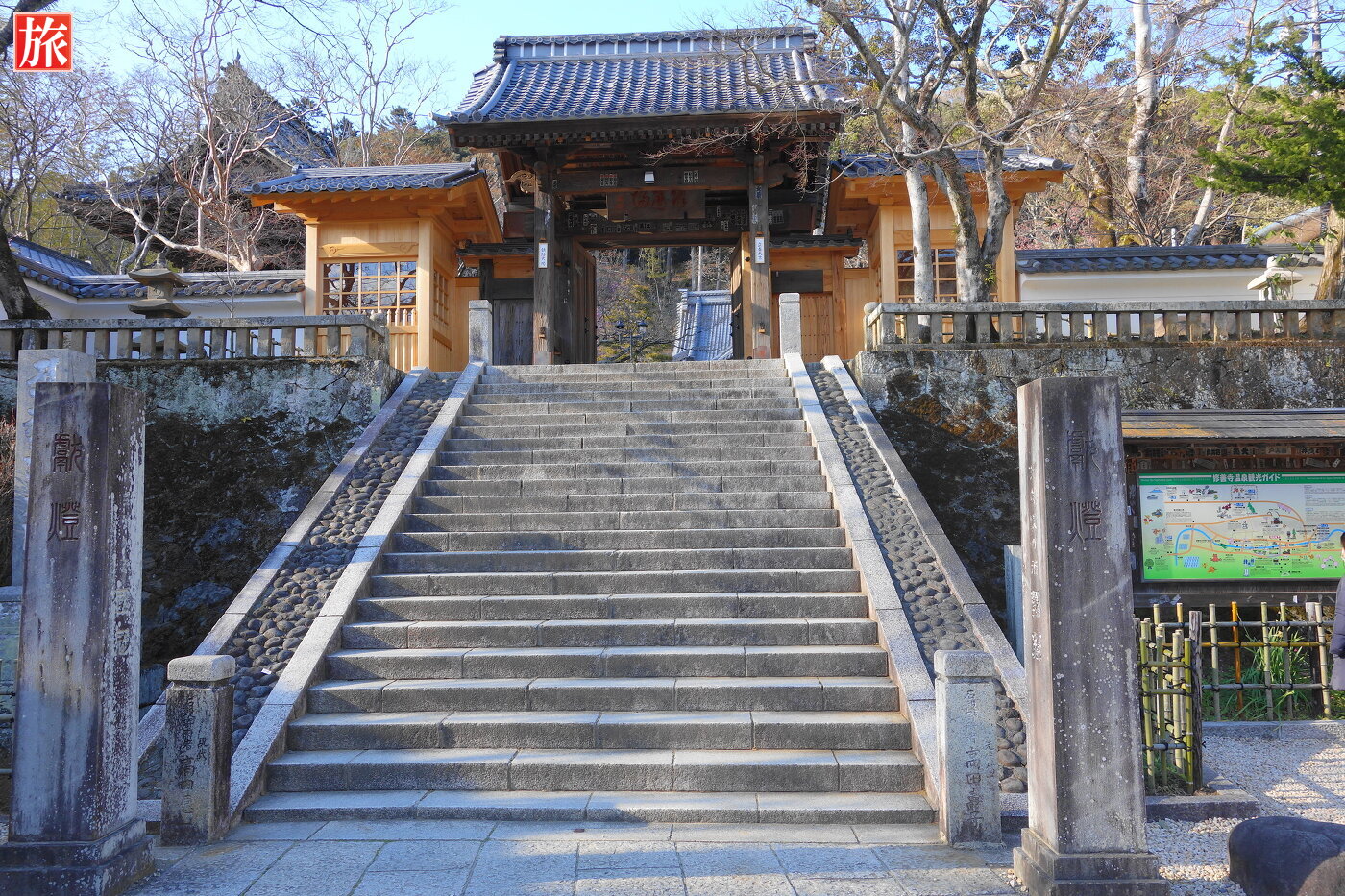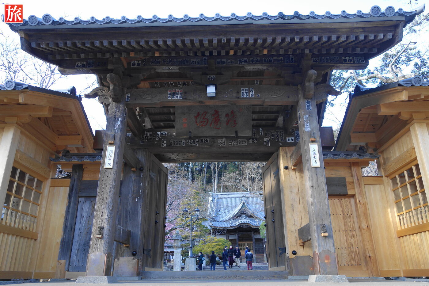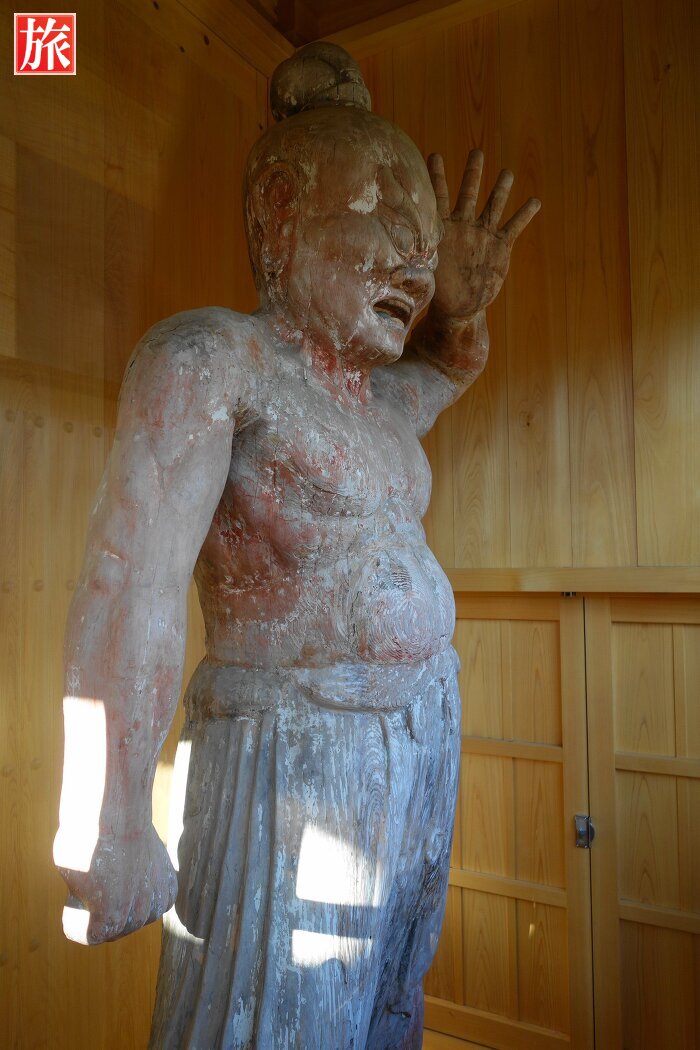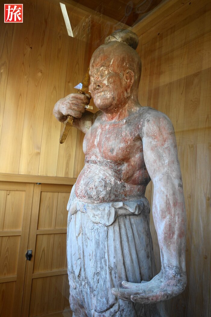 150年ぶりに修復された、山門。指月殿にあった金剛力士像(平安時代後期の作品)が仁王堂に収められています。山門正面に向って右の阿形像と左の吽形像。