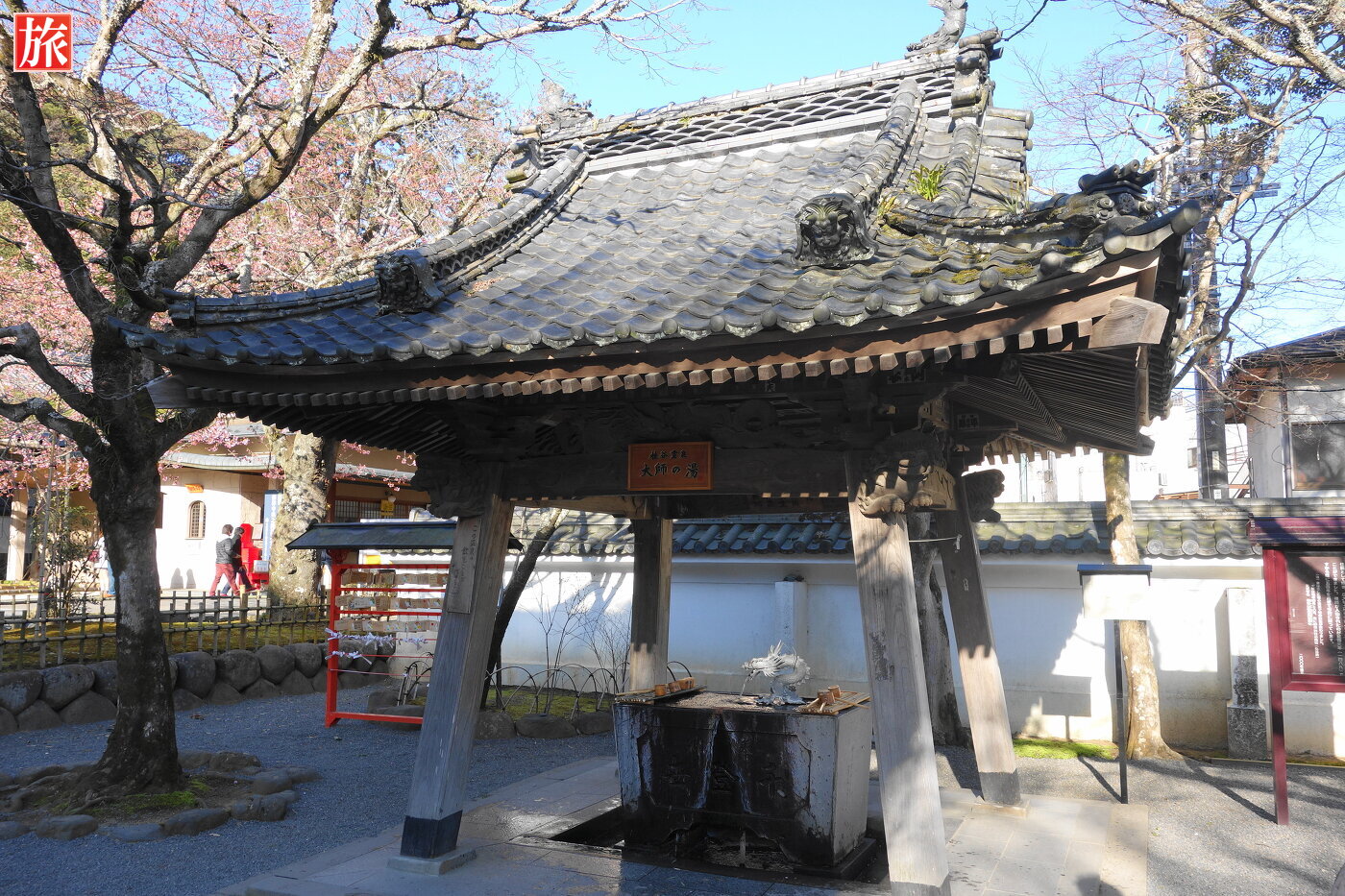 修禅寺の水屋は温泉でした。弘法大師ゆかりの温泉でお清めします。