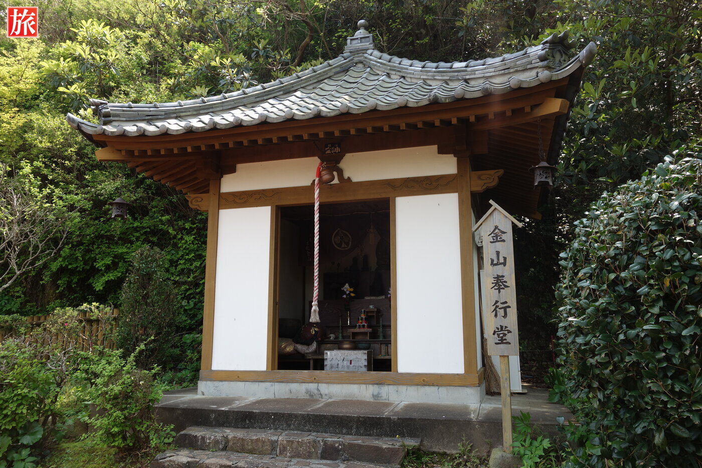 土肥金山の説明。金山奉行堂:1370年代、足利幕府直轄の金山奉行が土肥を支配し、盛んに金を掘ったのが、その始まりと伝えられています。池の真ん中に飾られた金の鉱夫「黄金の夢石像」