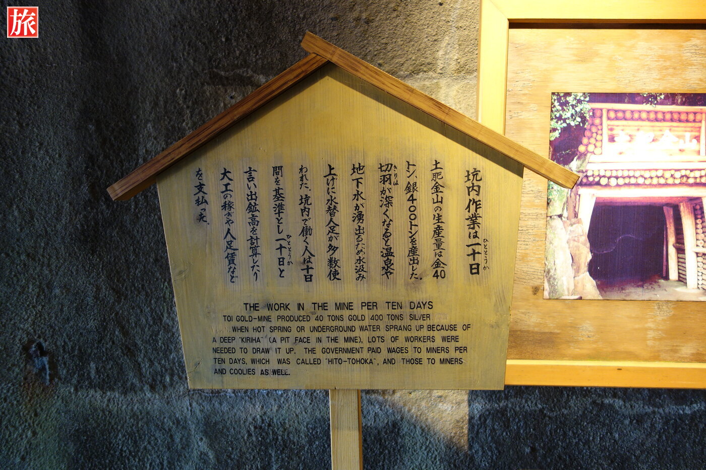 明治から昭和にかけては、佐渡金山に次ぐ日本第2位の産出量があった土肥金山。1965年に鉱量枯渇のため閉山し、現在は土肥マリン観光株式会社に所有され、観光用に利用されている。観光坑内には当時の鉱夫らの人形が再現されている。また、砂金採りの体験もできる。