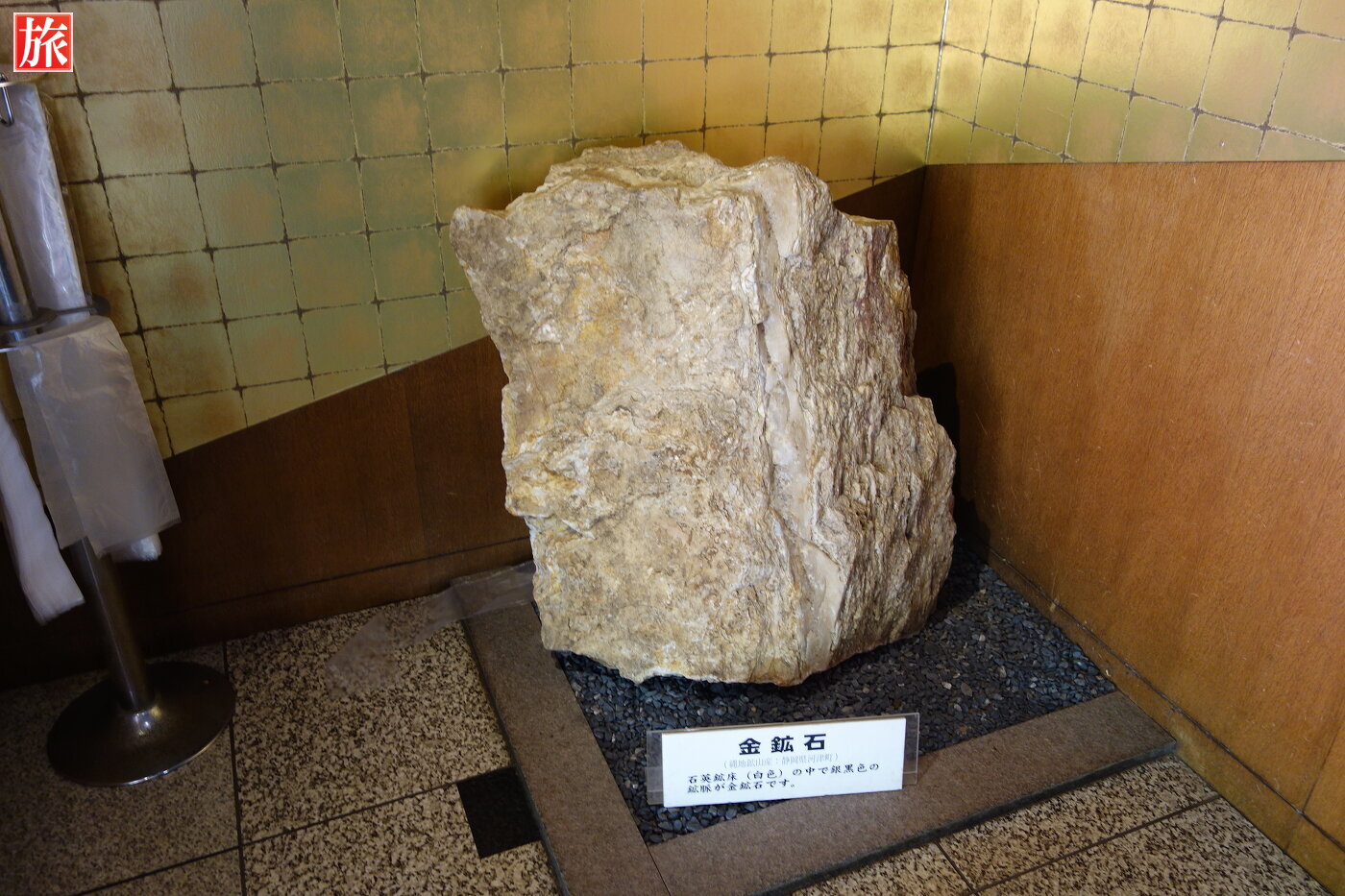 坑道を出て黄金館に向かいます。黄金館では、金鉱石や千石船、江戸時代の様子を再現したジオラマや巨大金塊などが展示されています。