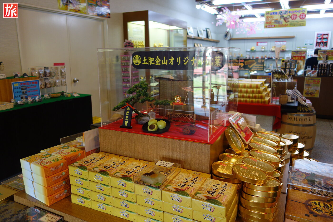 1/8の千石船(弁財船)。ここで掘られた金約40トン・銀400トンは、千石船で江戸に運ばれて、慶長大判・小判の地金にり利用されていたそうです。250kgの巨大金塊。出口付近では土肥金山オリジナルの銘菓が販売されています。