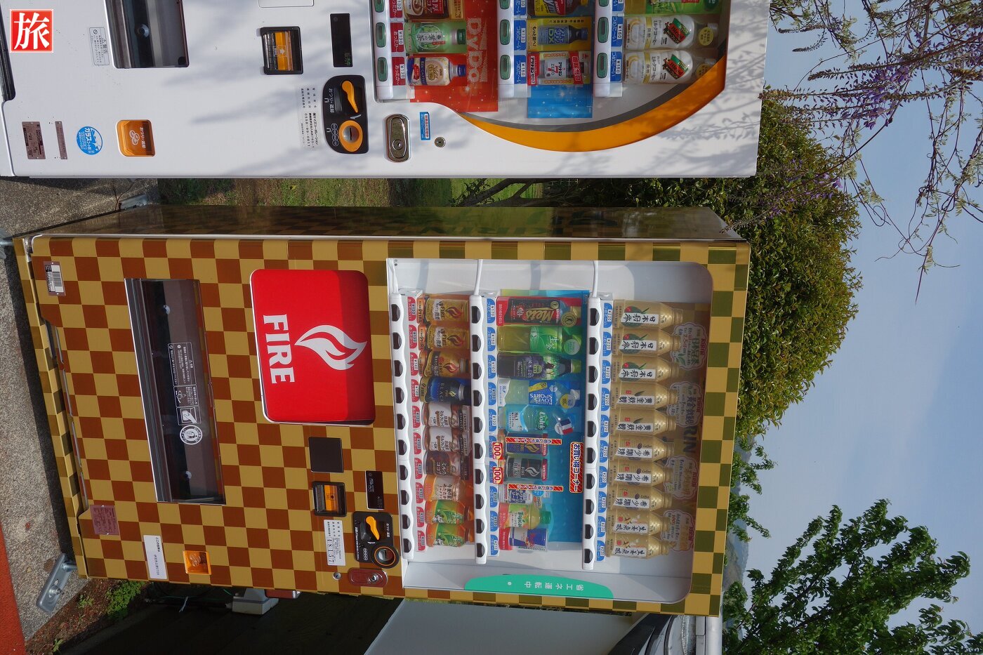 次は砂金館に向かいます。土肥金山らしいカラーの自動販売機。上段で販売されているお茶も金ぴか!