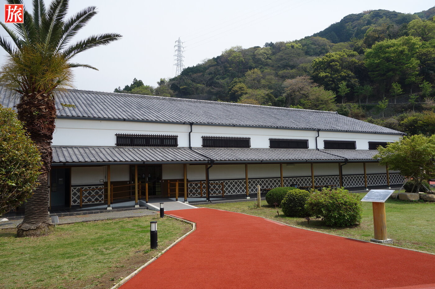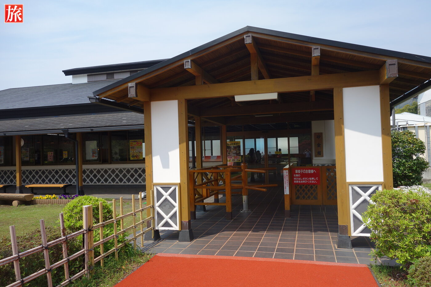 土肥金山に到着!駐車場の様子。正面に本館があります。観光坑内は右手の受付から入場します。