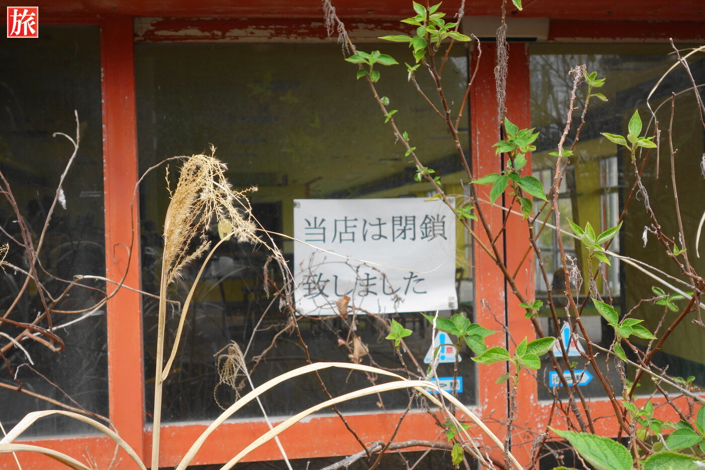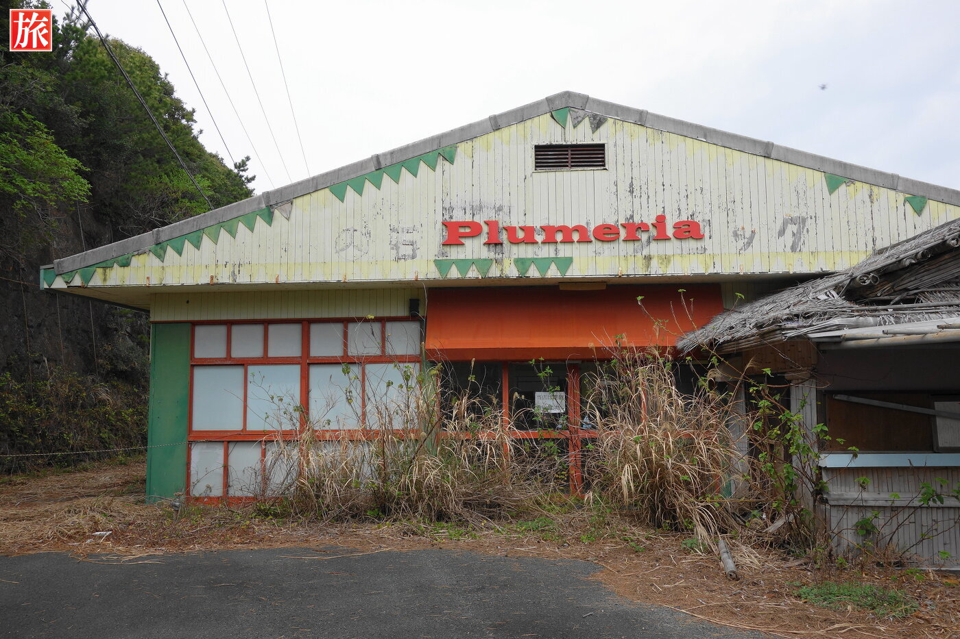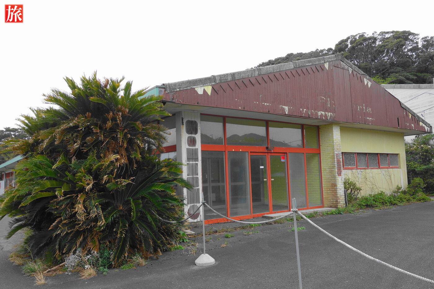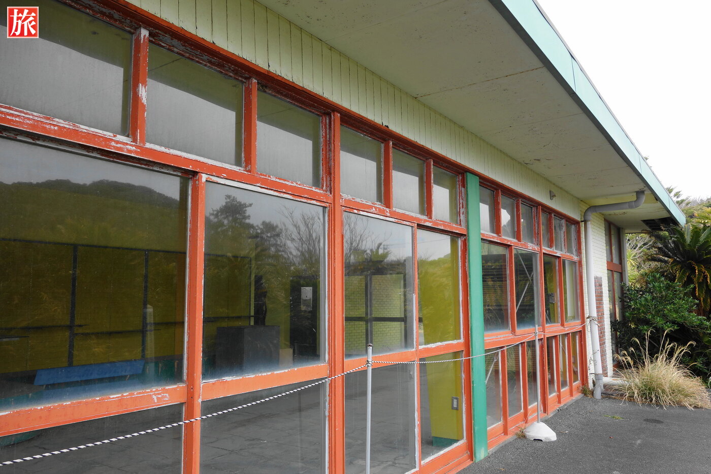坂を上りきると閉鎖され廃墟となった石廊崎ジャングルパークがあります。