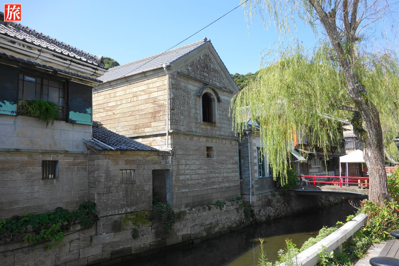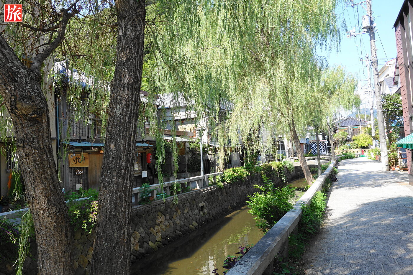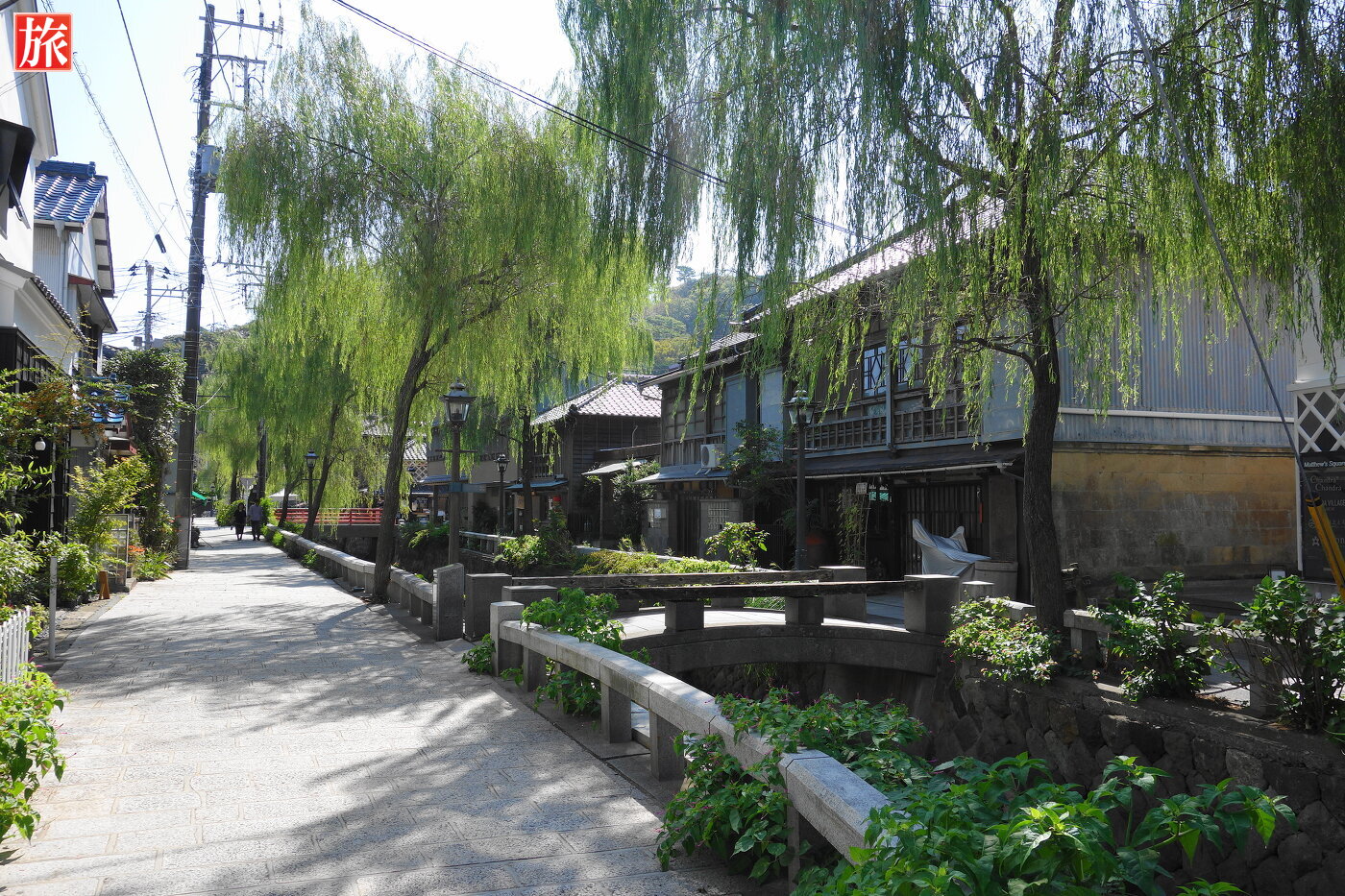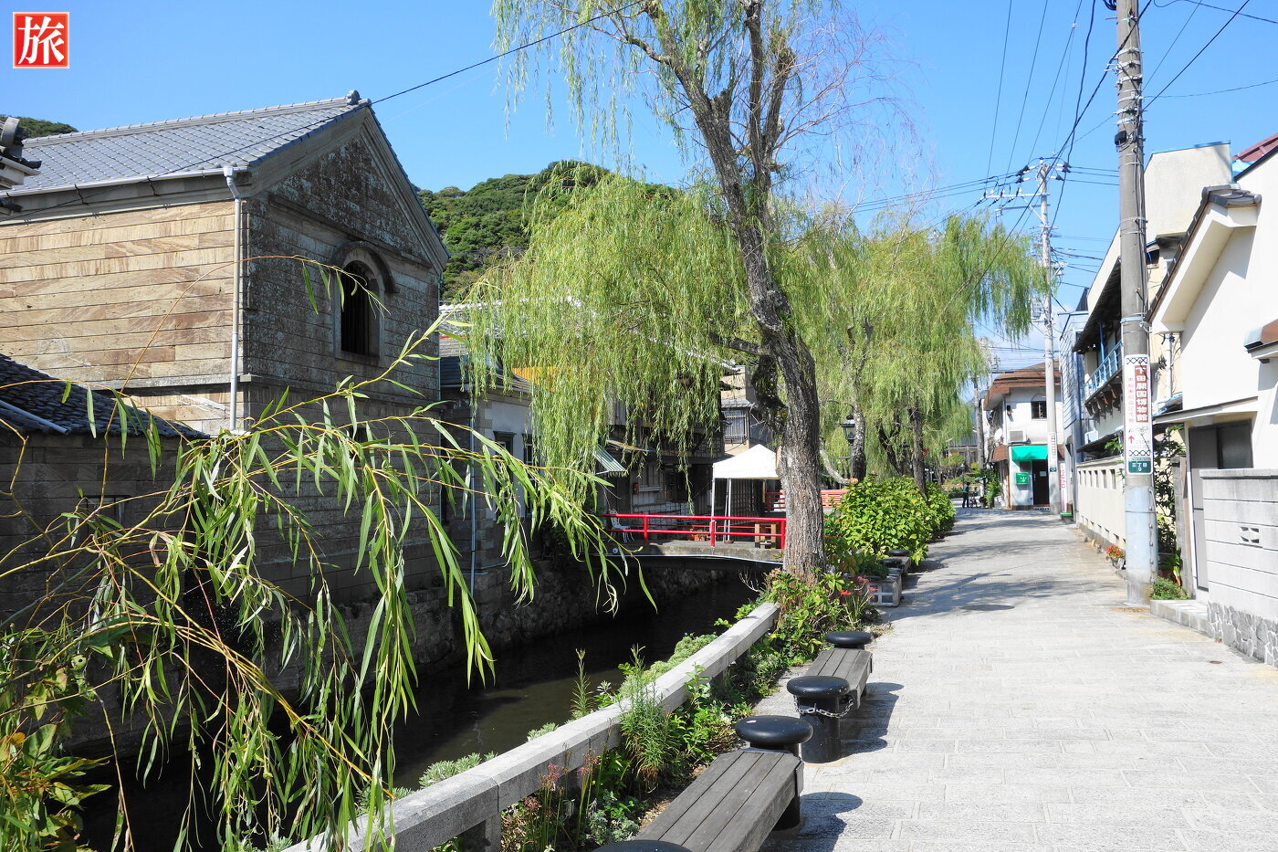 ペリーロード中、特に弥治川をはさむ石畳の小道沿いは、なまこ壁や明治、大正時代に作られた「伊豆石」を使った建物と柳並木が風情ある景観をつくりあげてます。 異国情緒あふれるレトロな雰囲気の中、ゆっくりと散策できます。アンティークショップやカフェなどが軒を連ねています。