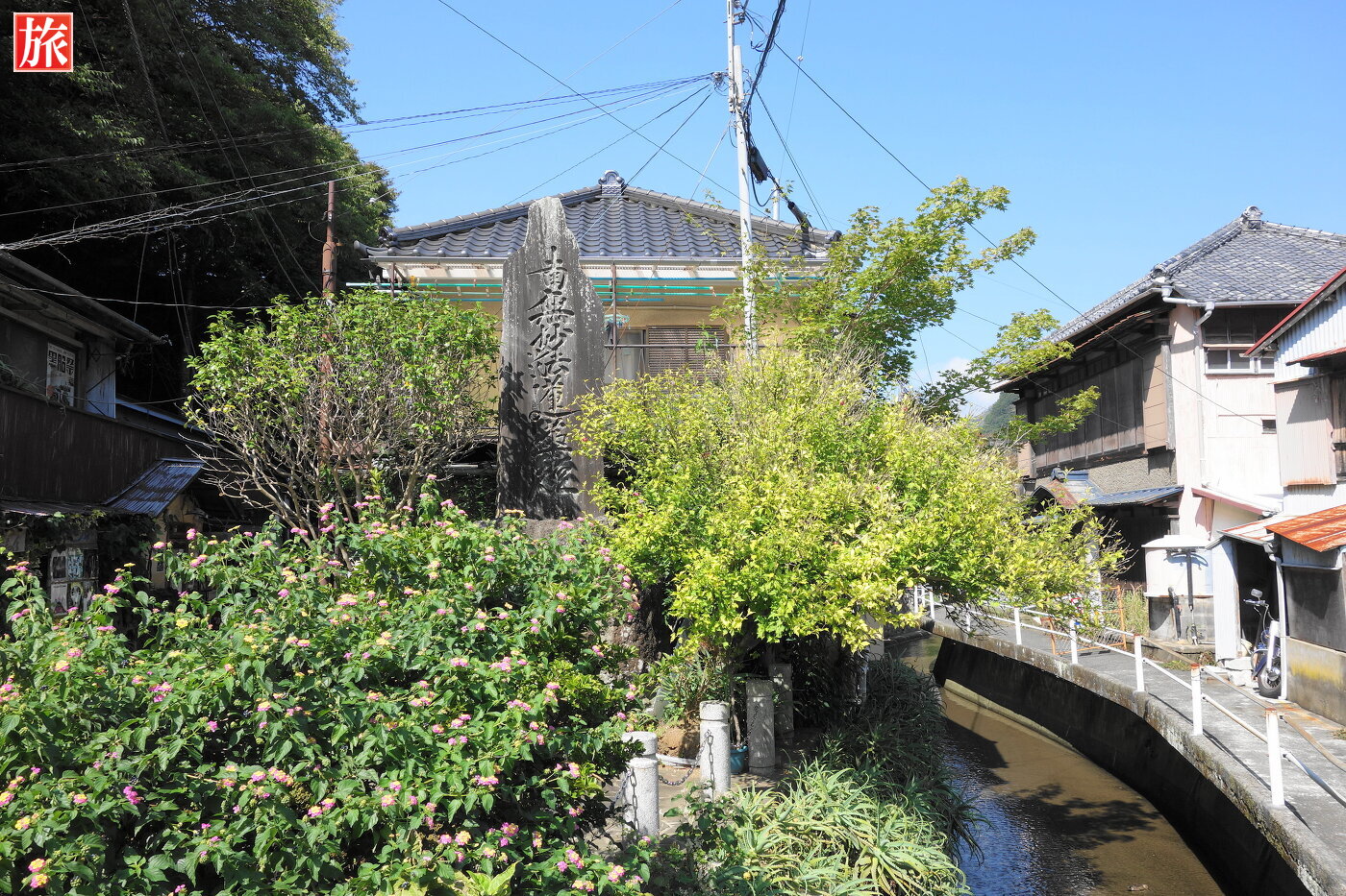 下田の風情を残す、石倉、なまこ壁の町並みが残る、幕末、黒船でやってきたペリー提督が300人の部下を引き連れ行進したペリー上陸記念公園から了仙寺までの道のり。平滑川をはさむ石畳の小道沿いにはなまこ壁や伊豆石造りの風情ある家並みが続いています。