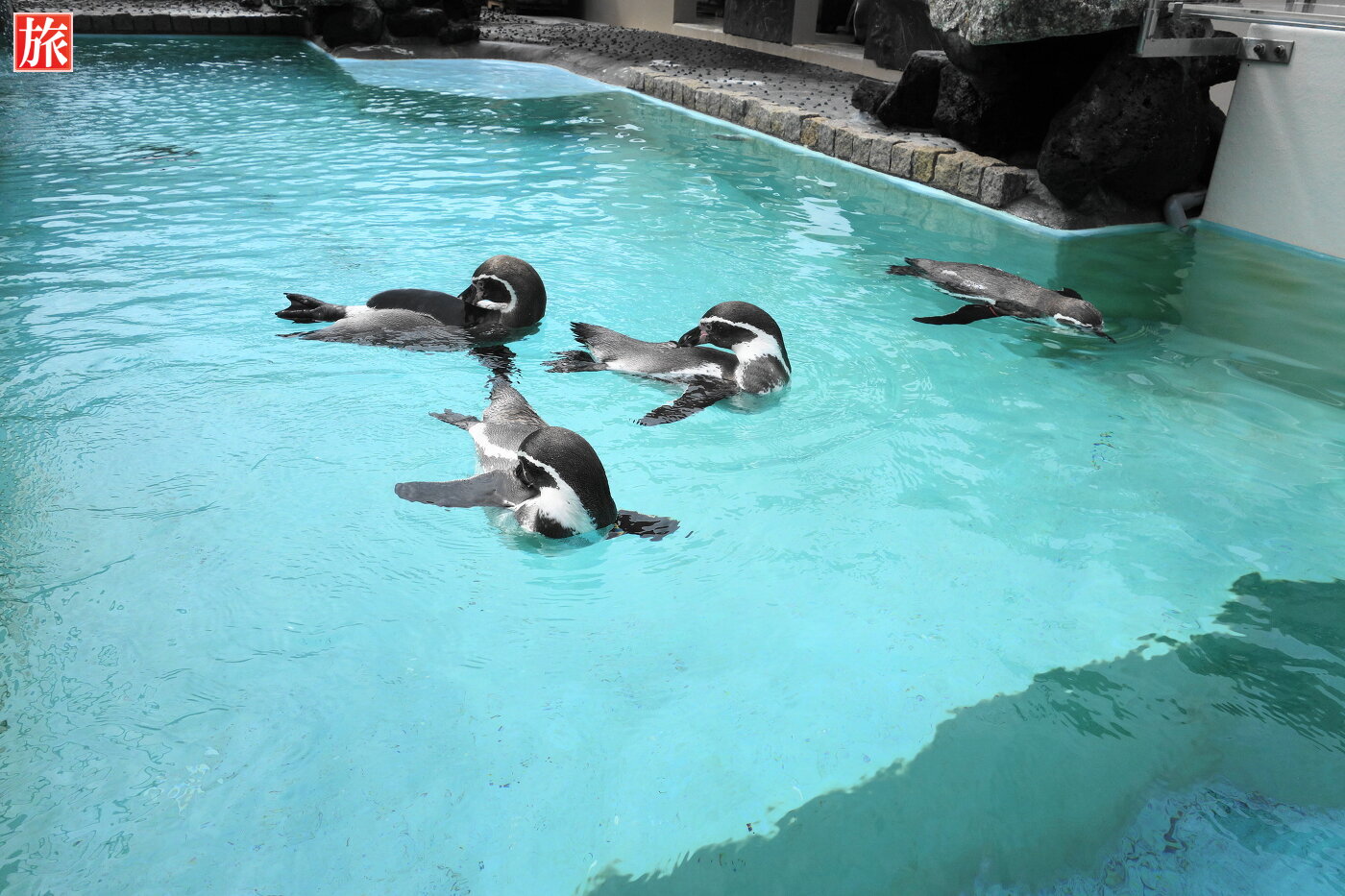 海上に浮かぶアクアドームペリー号は総排水量1300トンの船舶とのこと。ペンギンプール内を気持ちよさそうに泳ぐフンボルトペンギン?