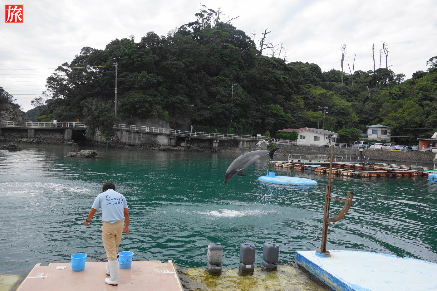 自然の入り江を利用して海上に浮かぶ浮遊円形水族館で、イルカショー、アシカショー、伊豆の海を模した大水槽内で行われる給餌ショーなどを楽しむ事ができます。B級スポット感漂う水族館でした。