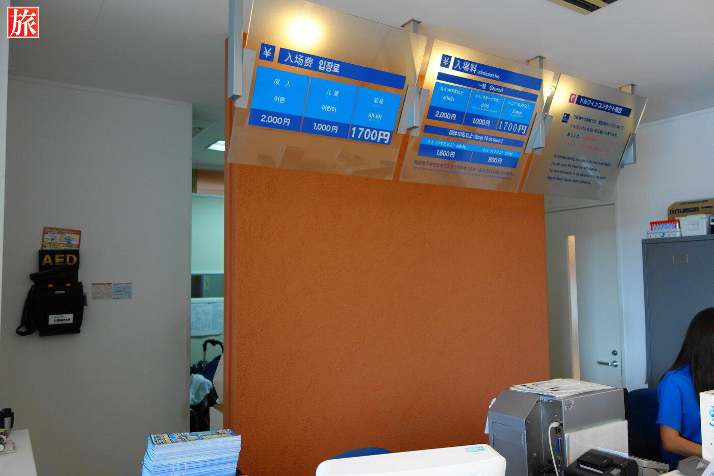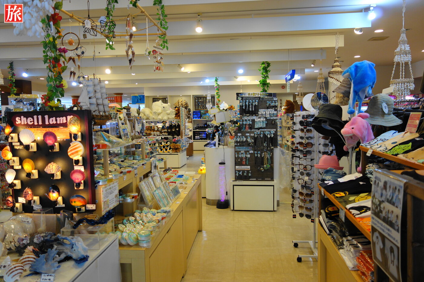 お土産、グッズ売り場。入館料 大人2000円(公式のWeb限定プラン割引「割引券をプリントアウト」を利用すると1800円)入館受付。浮き桟橋を渡し、通路として利用。