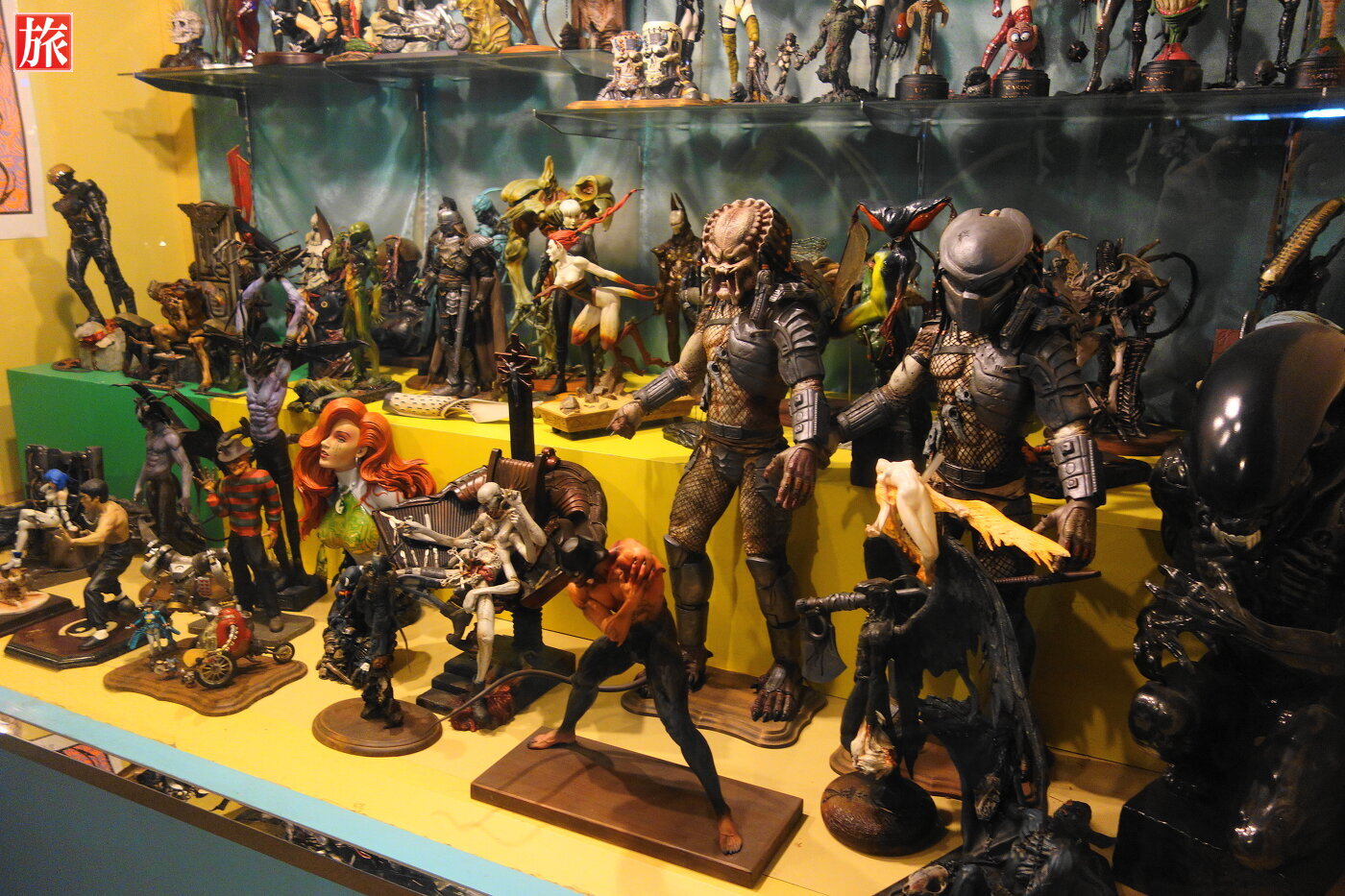 懐かしい紙芝居を再現したテレビ・・・2階エリアに白蛇神社が鎮座。エイリアンのフィギュア。