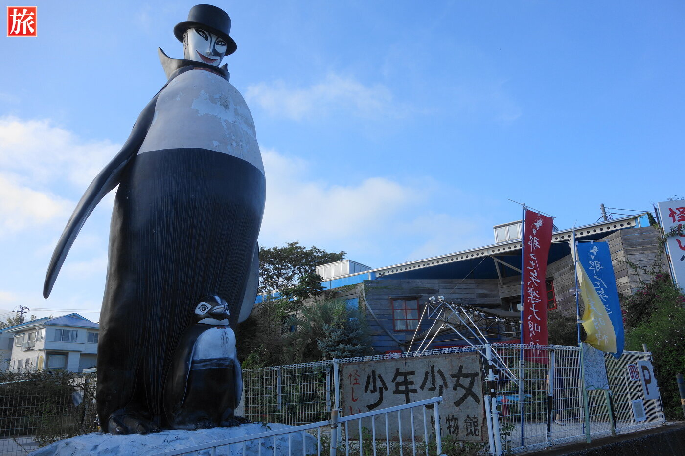シルクハットをかぶったペンギンを改造した怪しい外観が目印。「怪しい少年少女博物館」