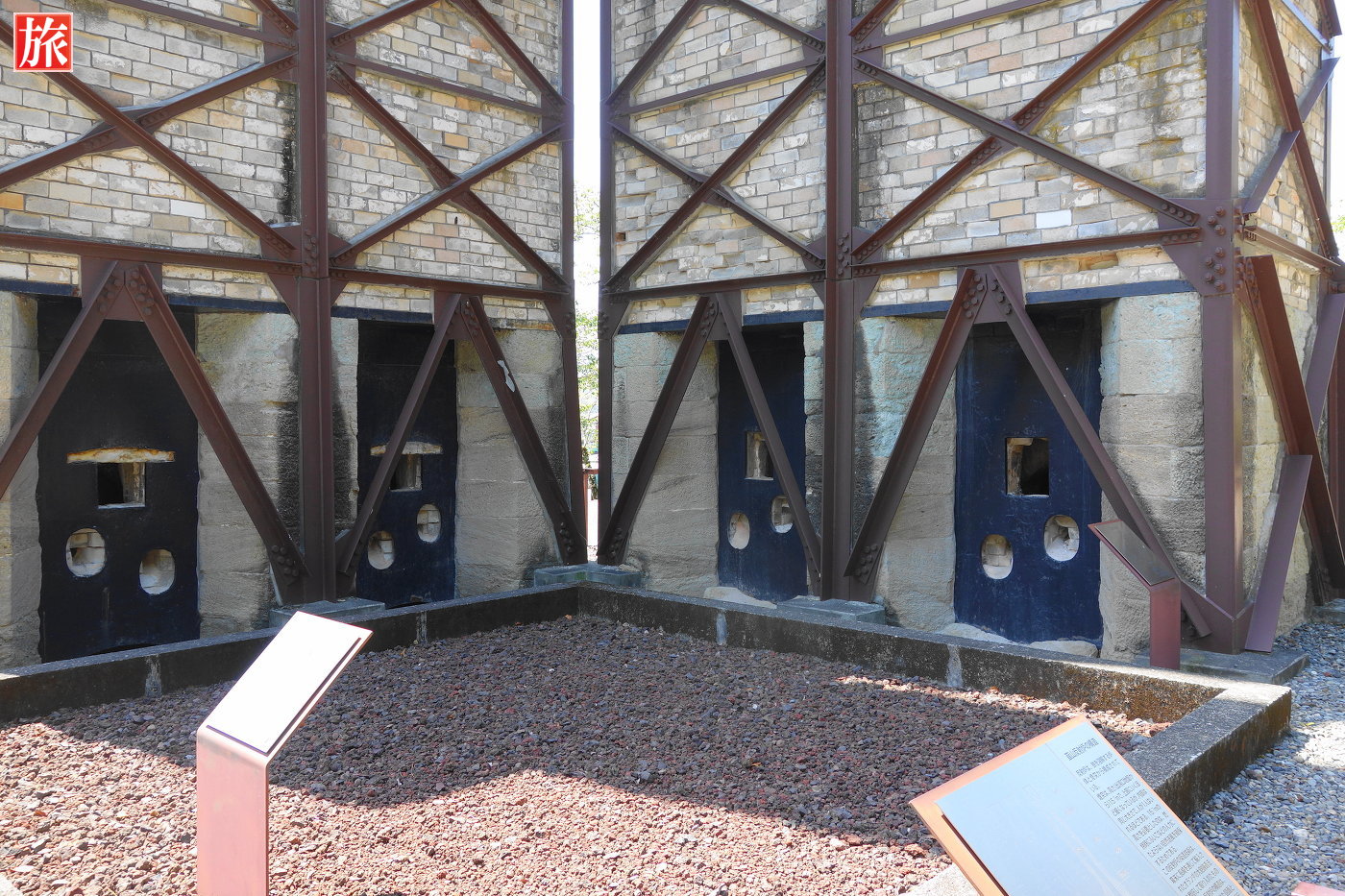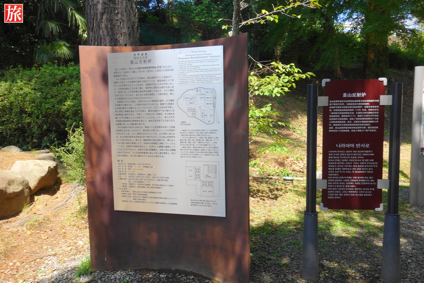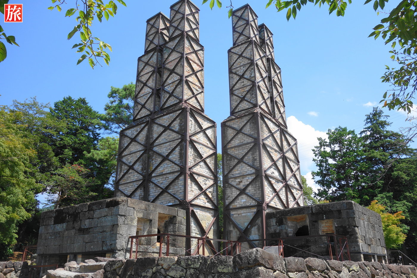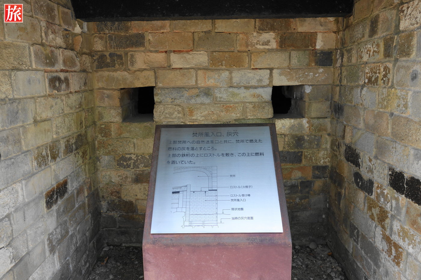 4基の反射炉の外側は伊豆石、煙突部分は3段構造で125段のレンガが積まれ、煙突を含め高さは約16m。内側は耐火レンガのアーチ積み。天井に熱を反射させて一つに集中し、金属を溶かす構造。ここで鋳造された大砲は品川台場に配備された。