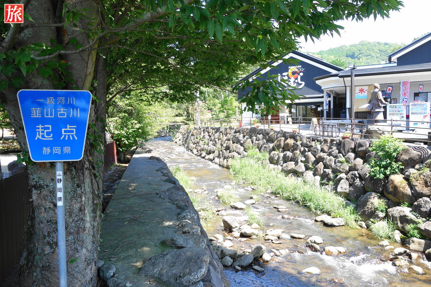 蔵屋鳴沢「レストラン」が傍にあるので腹ごしらえバッチリ!韮山古川「起点」の標識。江川坦庵(えがわたんなん)の像と韮山反射炉。