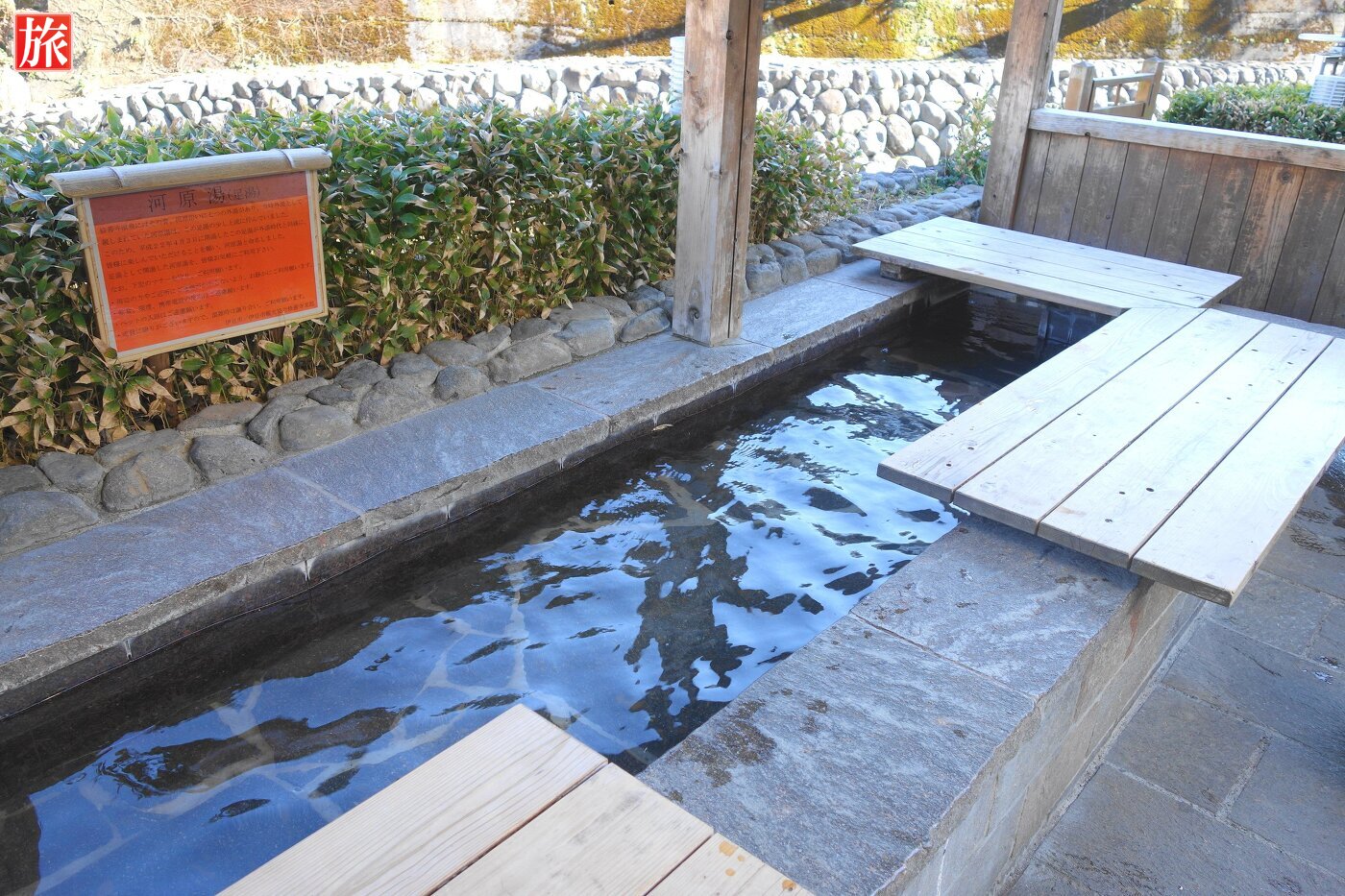 独鈷の湯の脇にあった足湯「河原湯」。桂川を眺めながら、浸かれます。