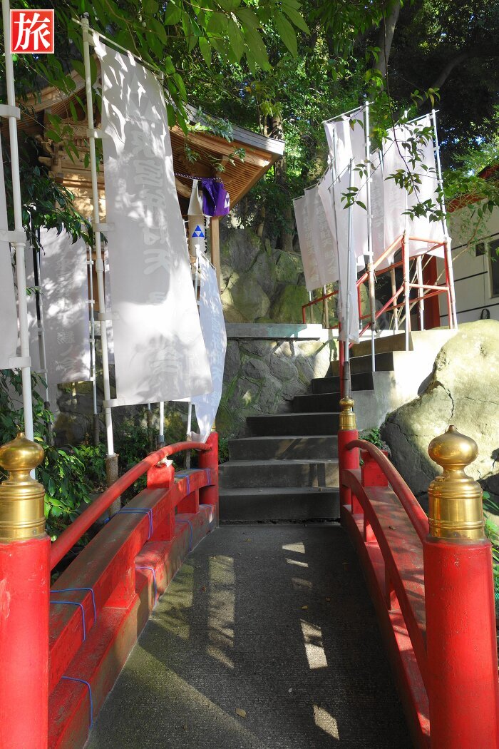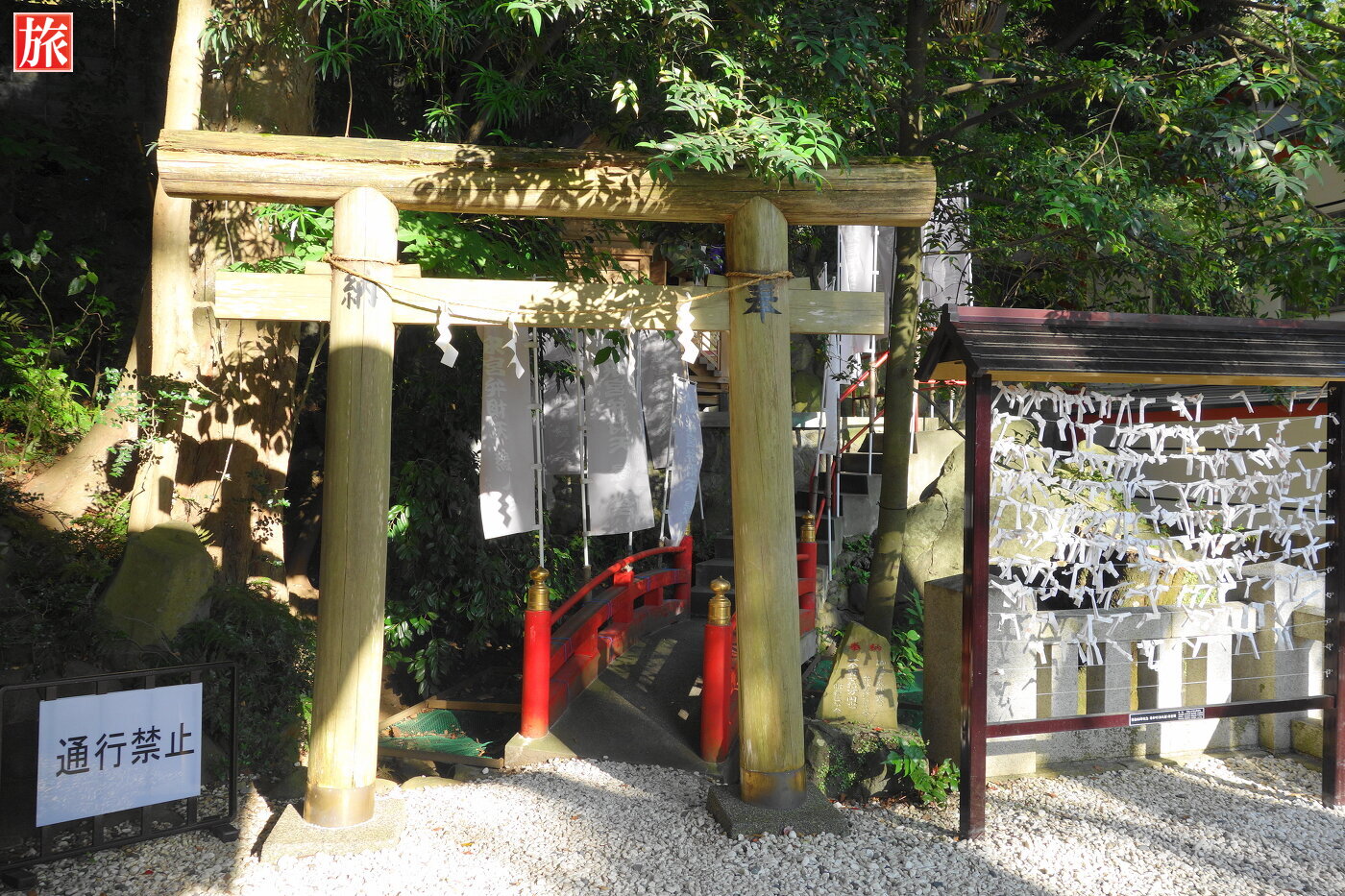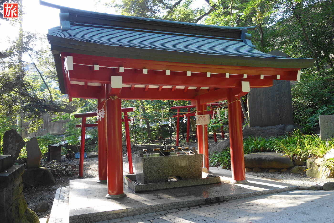 参道左手、稲荷社の鳥居がります。来宮稲荷社は京都伏見稲荷大社より勧請されたもの。手水舎。少し進んだ右手に「御神水」、お水取りは 初穂料1回1000円(健康成就・運勢開運)です。