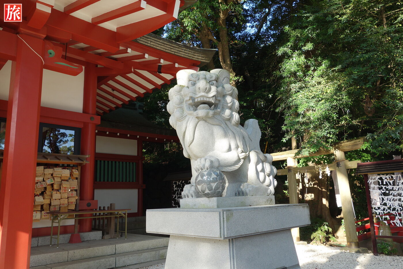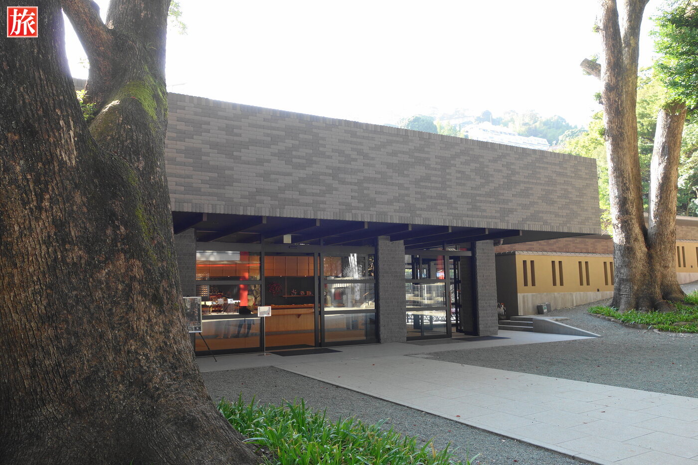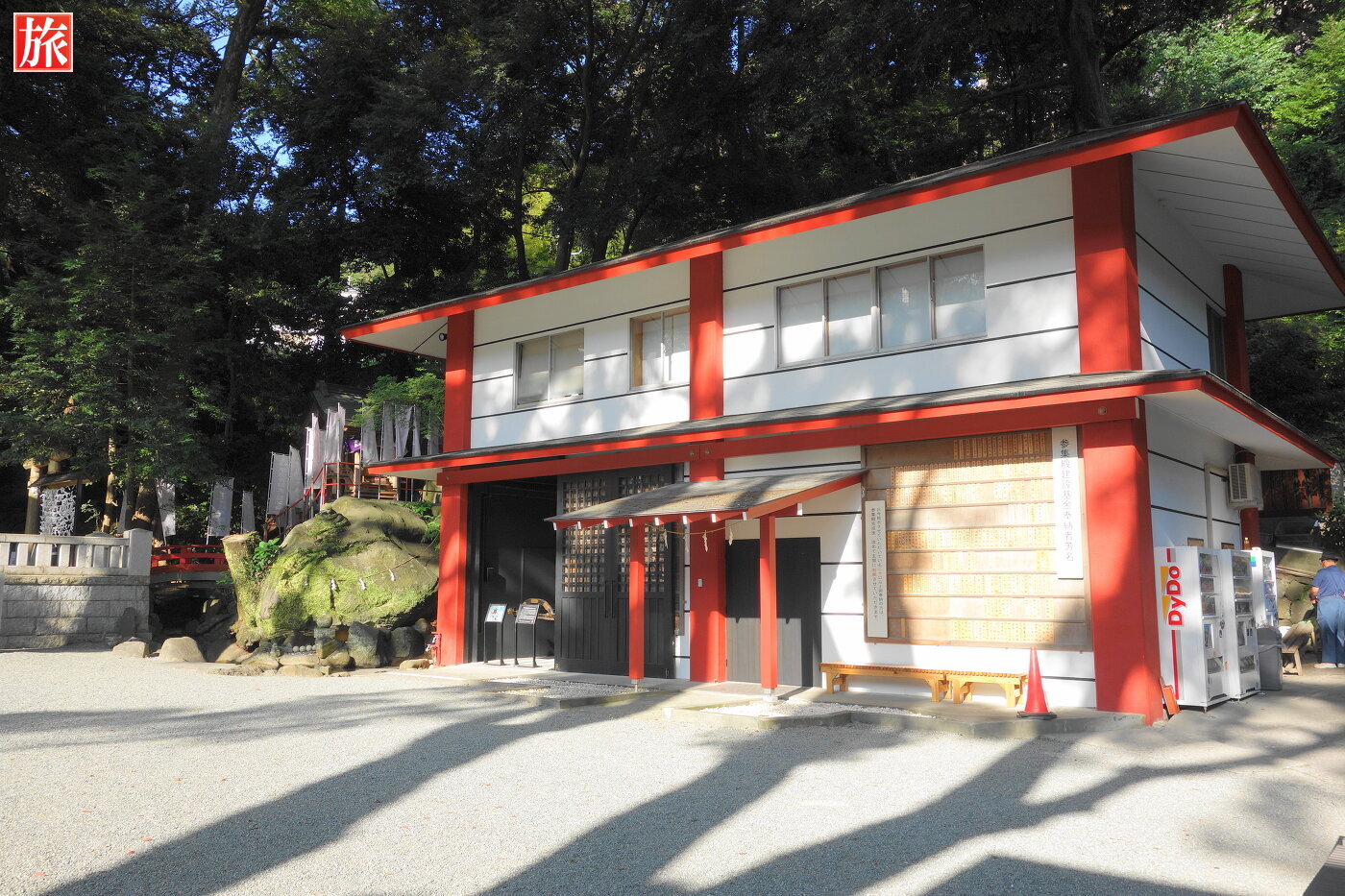 境内右手にある斎館。斎館には御鳳輦(ごほうれん:神輿)が納められています。「来宮神社例大祭」毎年7月16日では、四十二歳(厄年)になる男性が神々を乗せた御鳳輦を奉舁しながら海中へ入る「浜降り」が行われます。