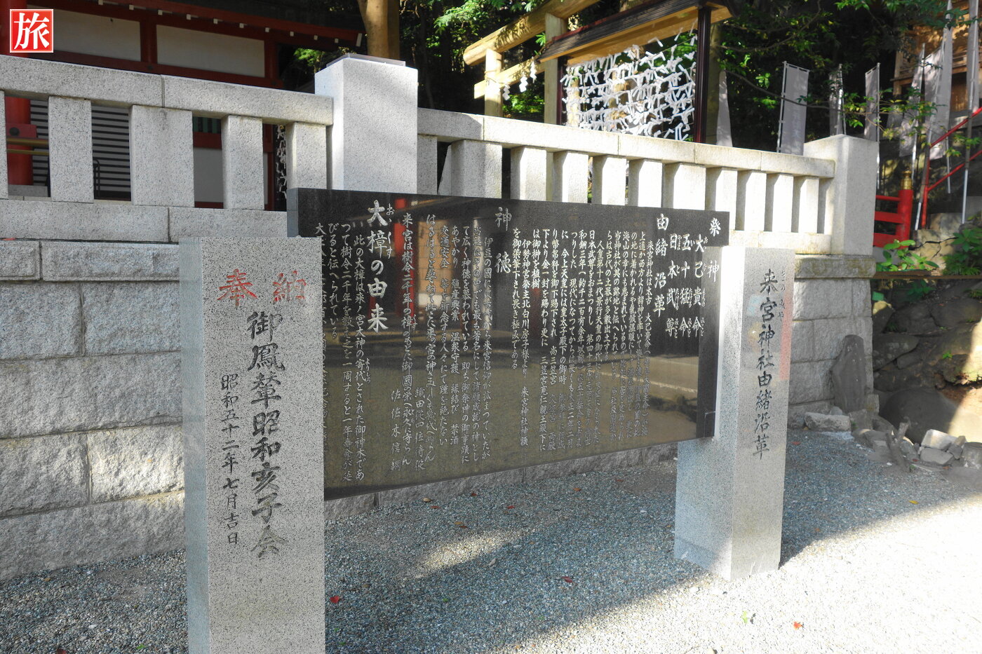 来宮の社・直営のお休み処が、来宮の社入口右手にありました。来宮神社入口です。来宮神社由来の説明板。