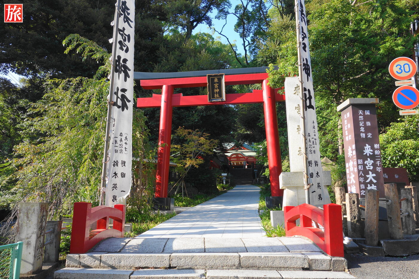 桜と来宮神社。昭和初期来宮神社の境内に末社として埼玉県の三峰神社より祀られた「三峯神社」。参道の両脇は青々とした竹が・・