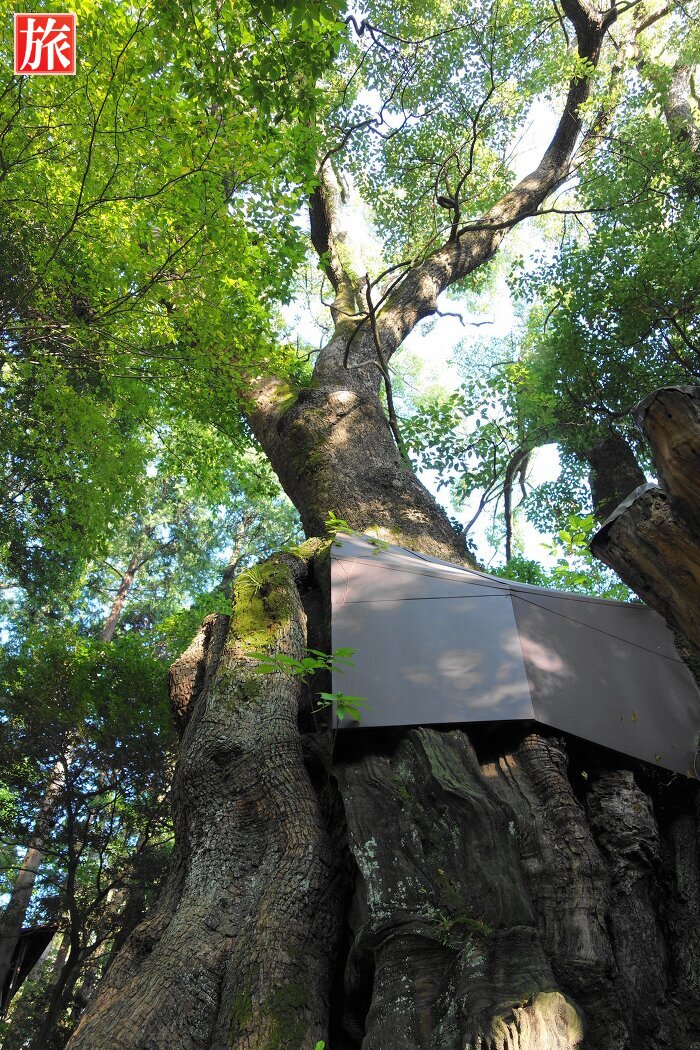 落雷の跡が残るも元気に生きる「第二大楠」。幹の中身が落雷によって大きな空洞となっています。空洞内には祠がありました。