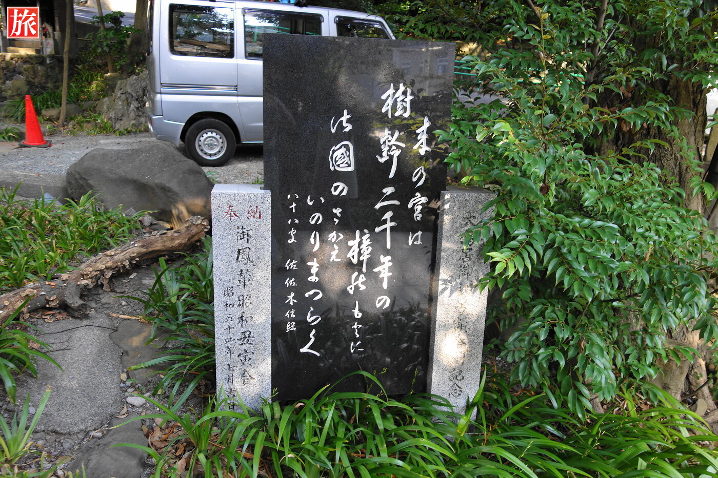「来宮は 樹齢二千年の 楠木のもとに み国のさかえ いのりまつらん」・佐佐木信綱の歌碑。参道の左に注連縄の巻かれた大石。来宮神社内の三峰神社。本殿は寛文元年(一六六一)建立の春日造で、伊弉諾尊、伊弉册尊を祀っています。