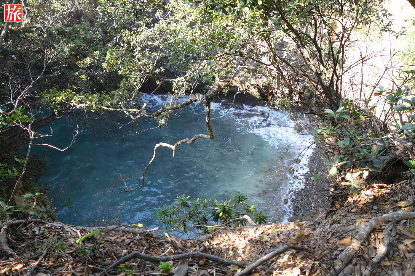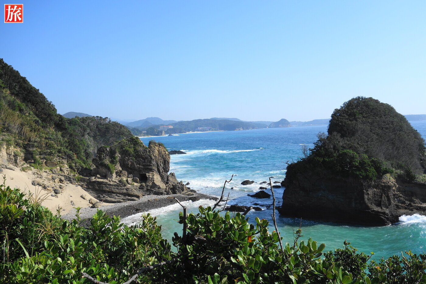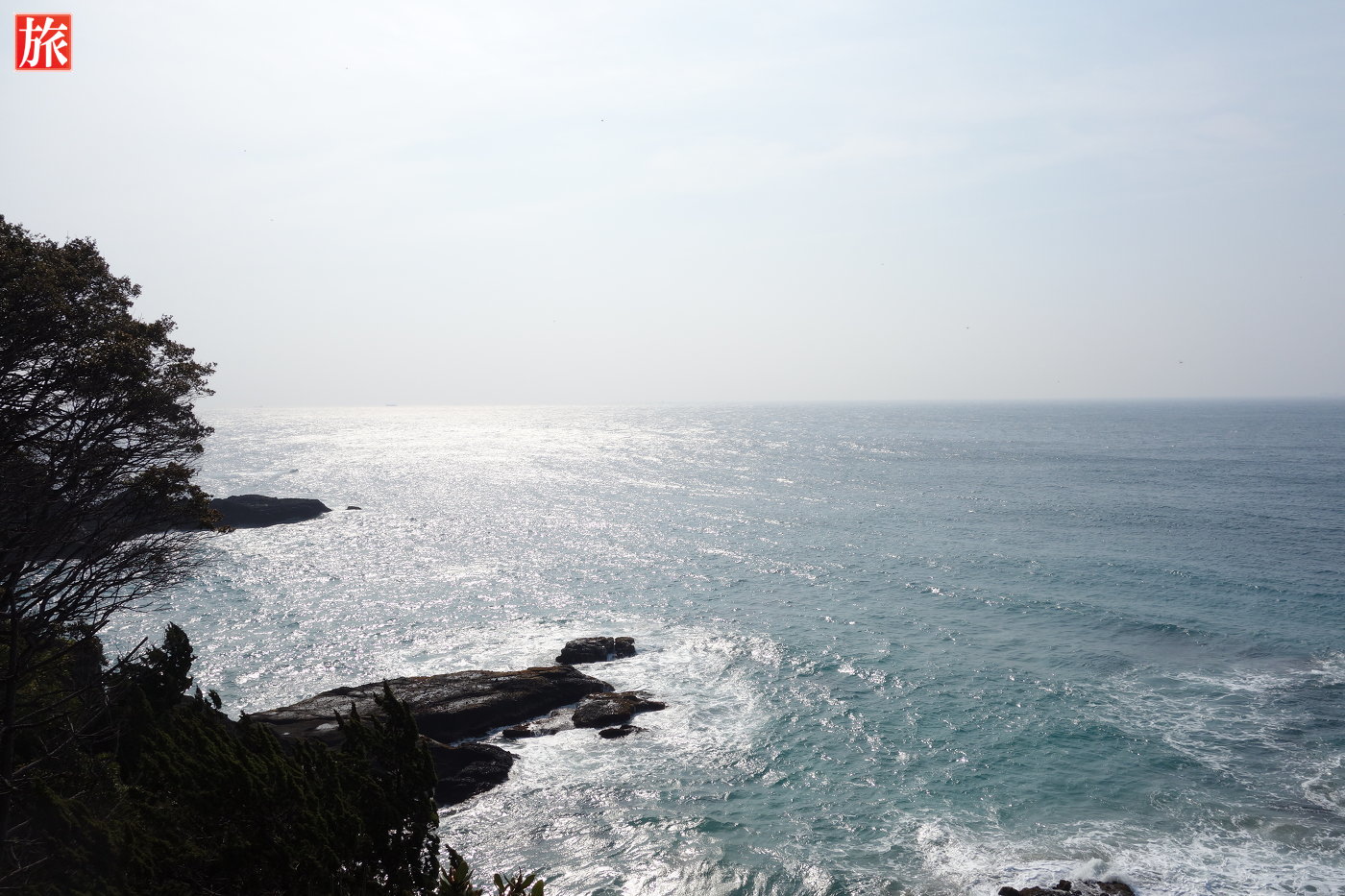遊歩道を一周してみます。下田方向の景色。こちらにも竜宮窟を眺める展望スペースが用意されていました。