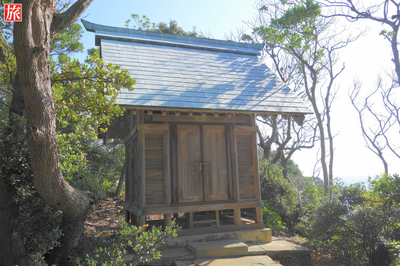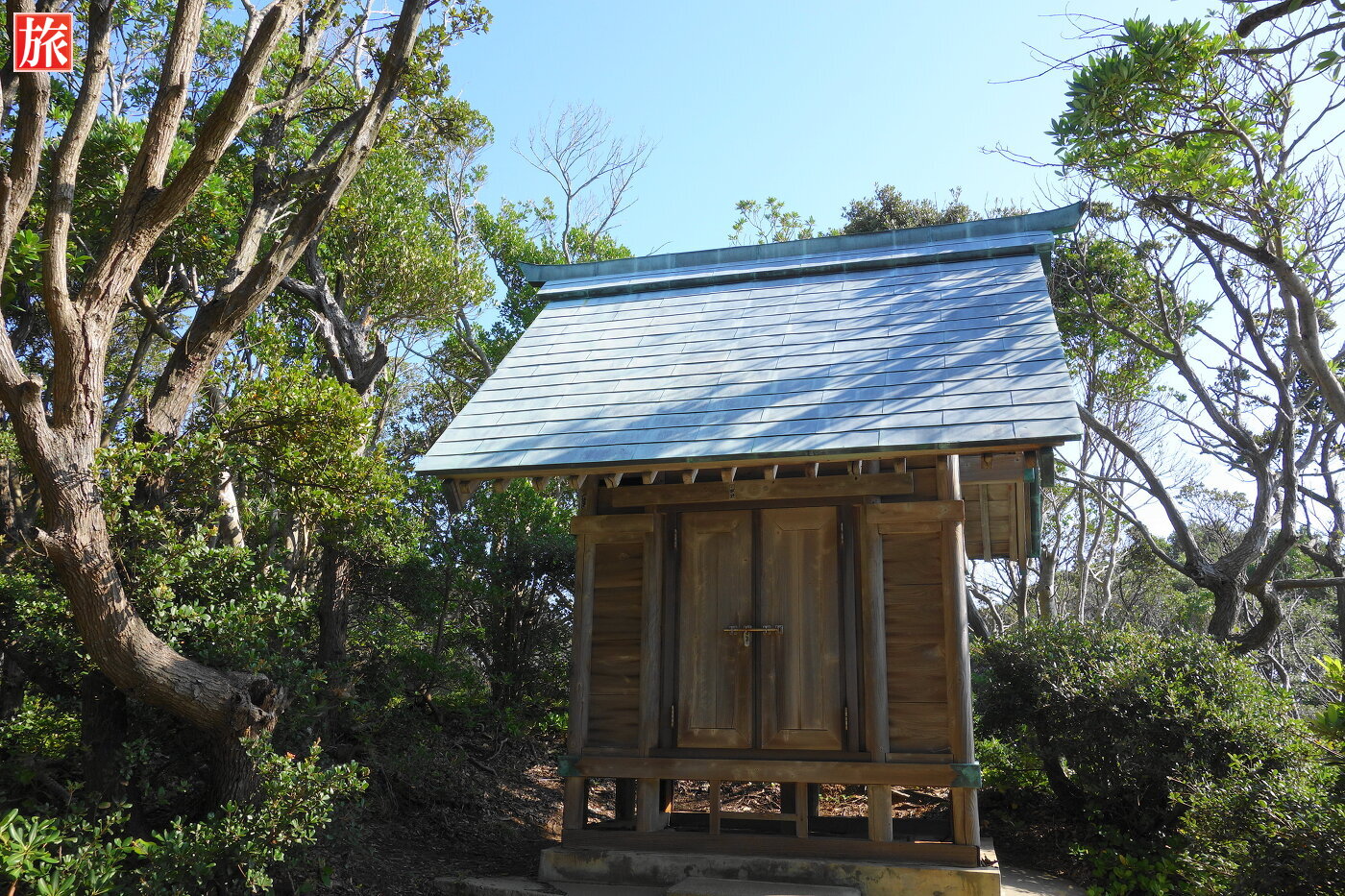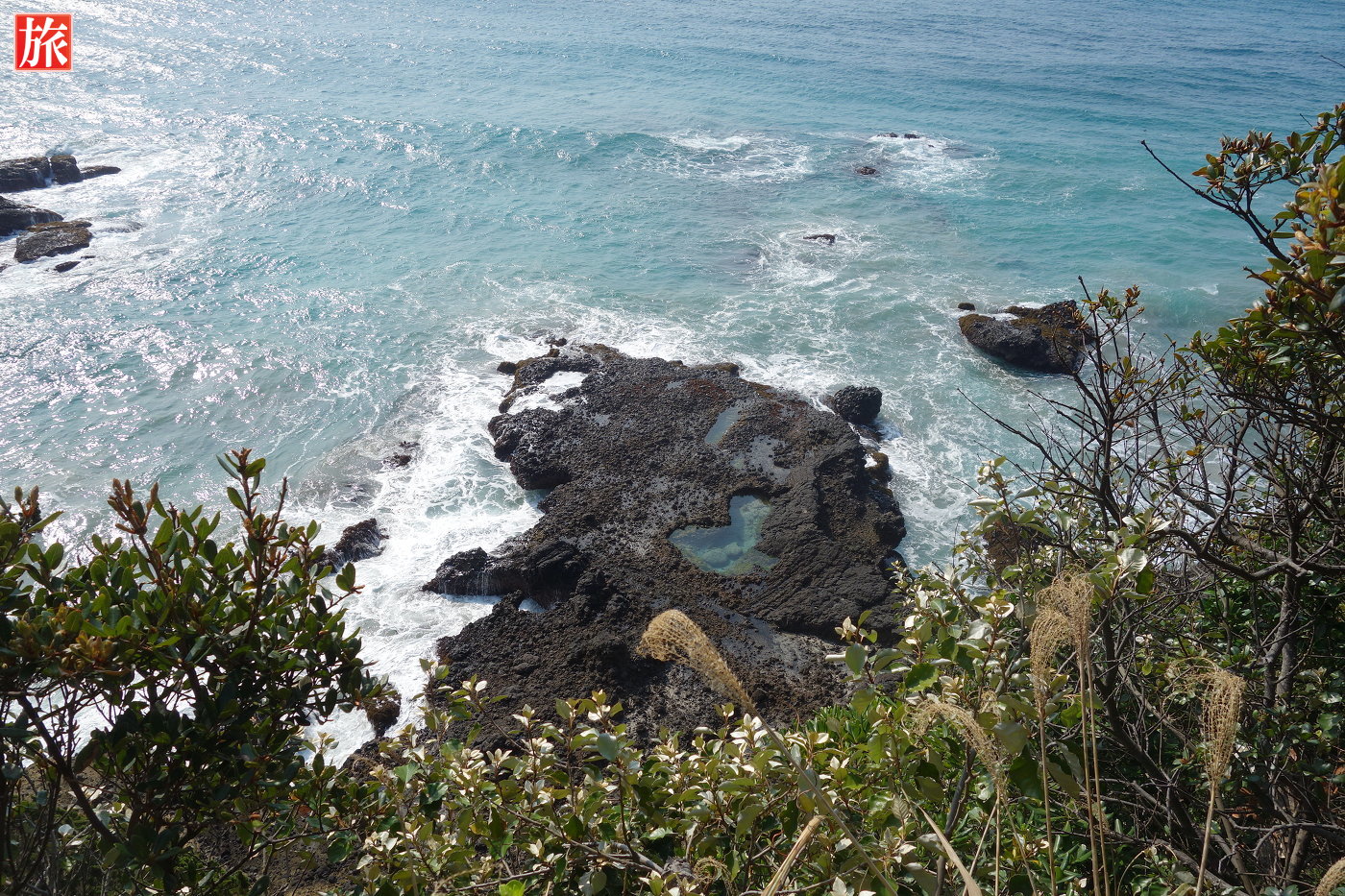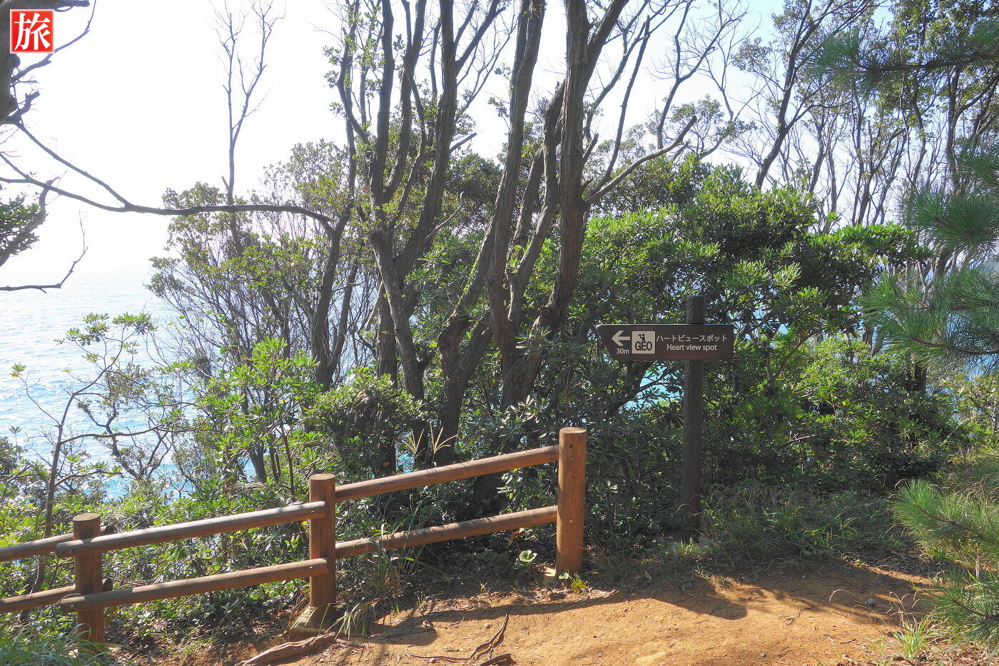ハートビュースポットに向かう途中の展望スペースからの風景。もうすぐハートビュースポット!竜宮窟の竜宮神社。