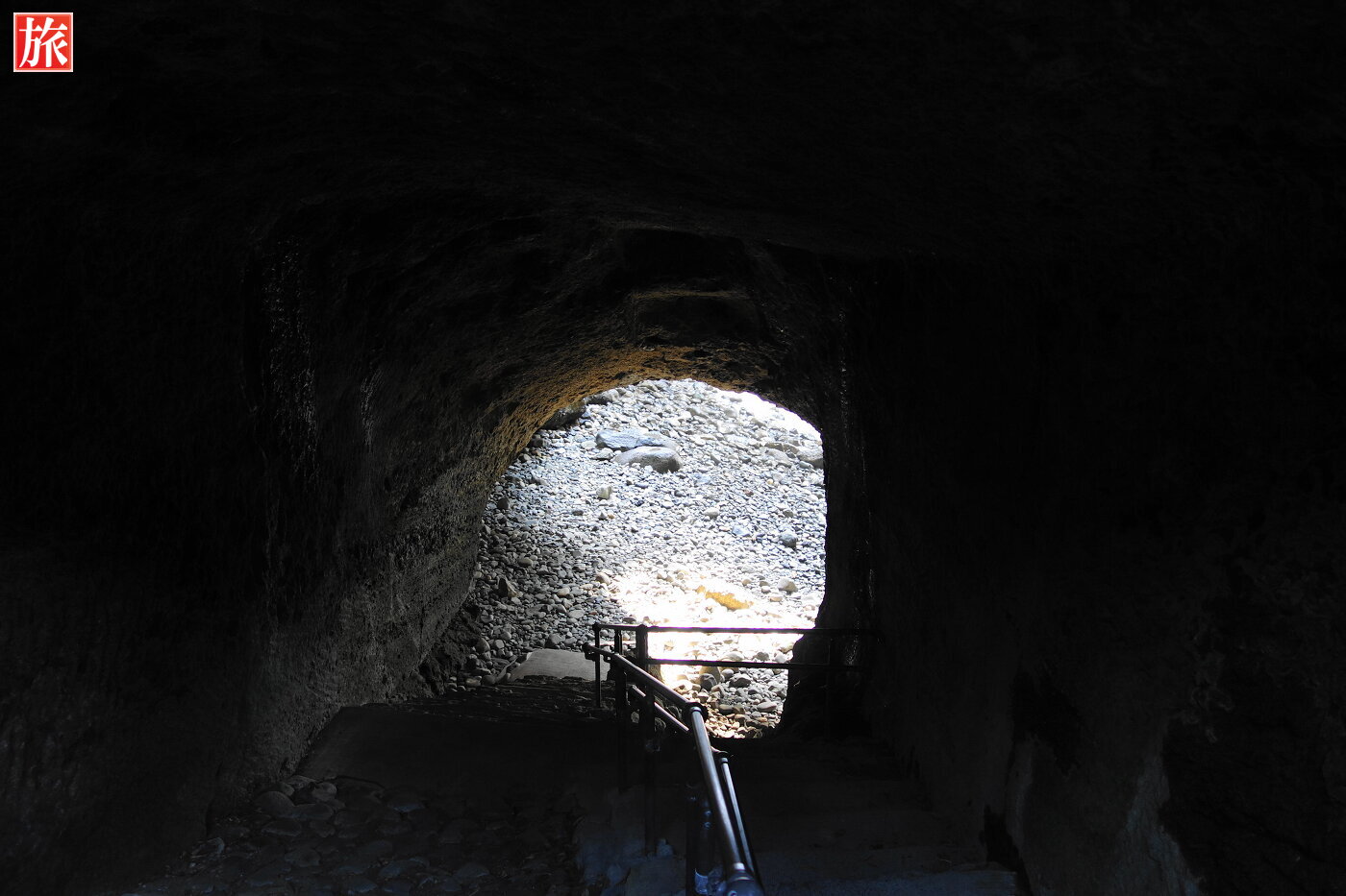 この二穴入口から階段を下り洞窟へと向かいます。階段を降りた付近はゴロゴロと石が散らばっています。